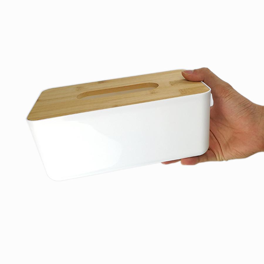 Hộp đựng khăn giấy chữ nhật nhựa nắp gỗ kiểu nằm sang trọng, hiện đại rất thích hợp để đựng khăn giấy như trên xe hơi, bàn làm việc, phòng khách, phòng ăúp bạn sắp xếp khăn giấy gọn gàng đồng thời giúp bảo vệ khăn giấy của bạn tránh ướt do nước dính vào.