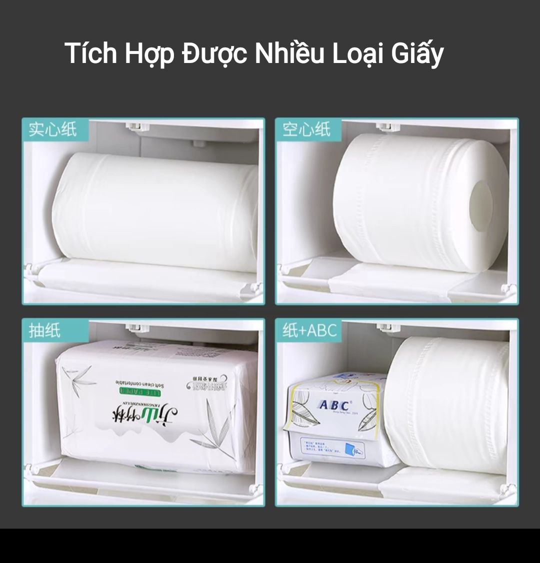 Được làm từ nhựa bền đẹp, thời gian sử dụng lâu dài. Nắp đậy có thể đóng mở 1 tay. Dùng treo các cuộn giấy có chiều dài nhỏ hơn 18cm, phía dưới có rãnh răng cưa để xé giấy, thuận tiện hơn trong việc lấy giấy. Phía trên kệ có khay đựng đồ và khe cắm điện thoại tiện dụng, có thể sử dụng điện thoại trực tiếp, có thể chịu tải lên đến 2kg. Phía trước có khe trong suốt để theo dõi lượng giấy bên trong nhằm thay thế giấy khi sắp hết.