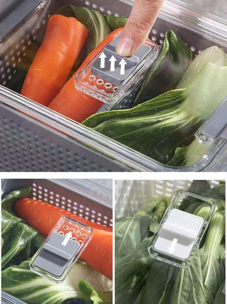 Mua tại TiktokThiết kế kín giúp thực phẩm tươi lâu hơn gấp 5 lần, có 2 lớp giúp rau thịt không bị úng nước, thanh chia ngăn tùy chỉnh mục đích sử dụng, lỗ thoát khí có thể đóng mở tùy mục đích