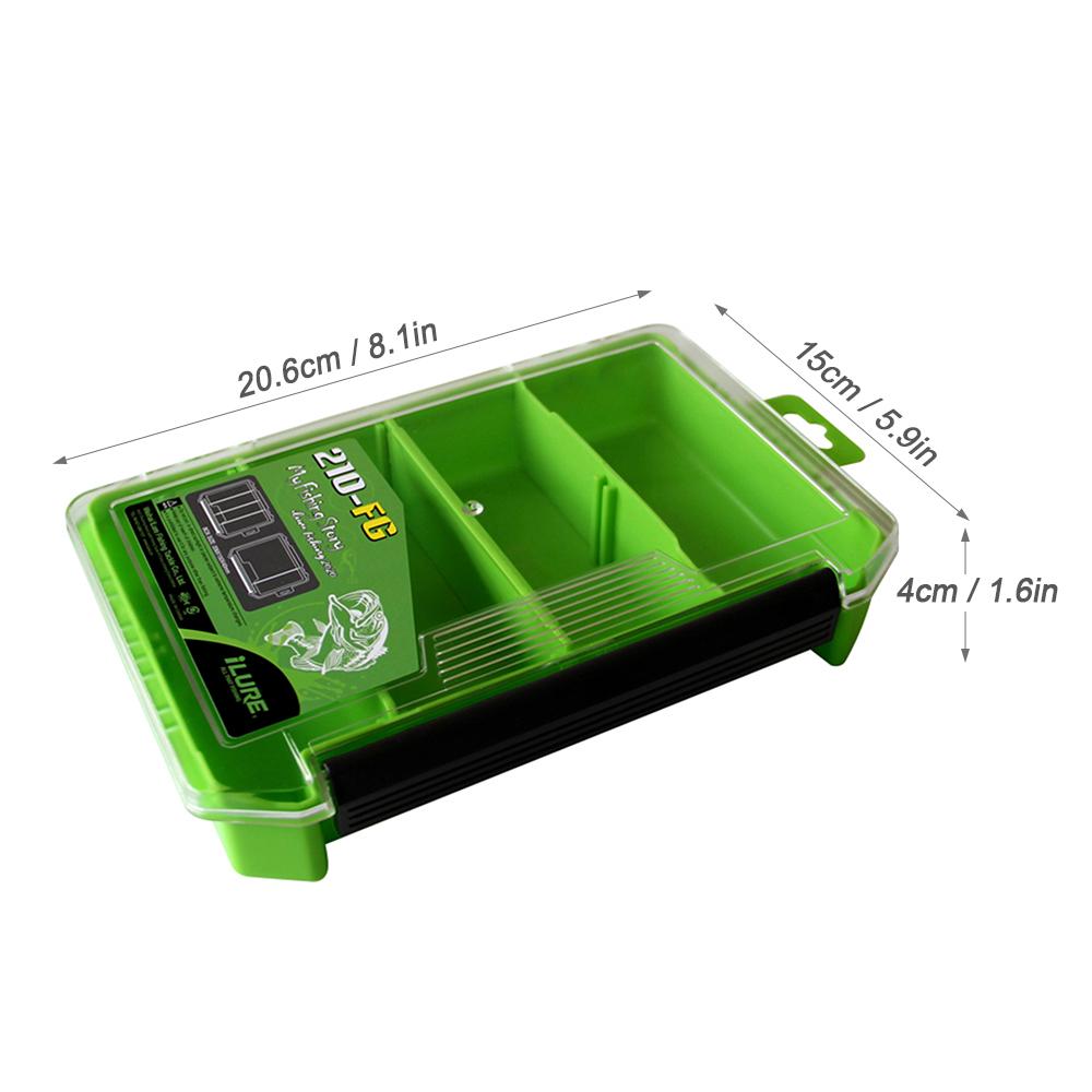 Double-sided fishing box helps keep your fishing accessories organized. Features: High-strength plastic material for durability. Double sided design keep your fishing accessories organized. Clear lids make the contents visible. Built-in drainage holes keep the box