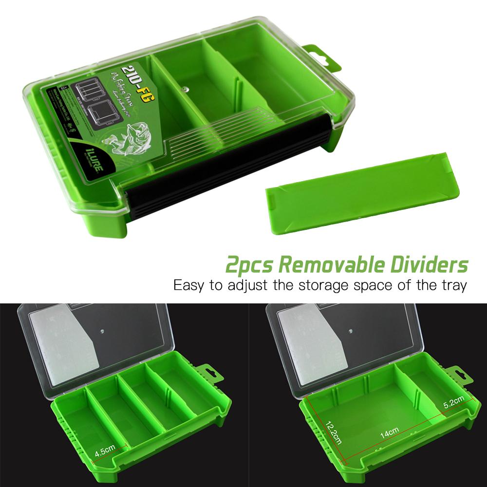 This fishing box with removable dividers allows you to adjust the storage space of the box. It is suitable for hooks, lures, swivels, clips, and other fishing accessories. Features: Made from PP and ABS plastic, super