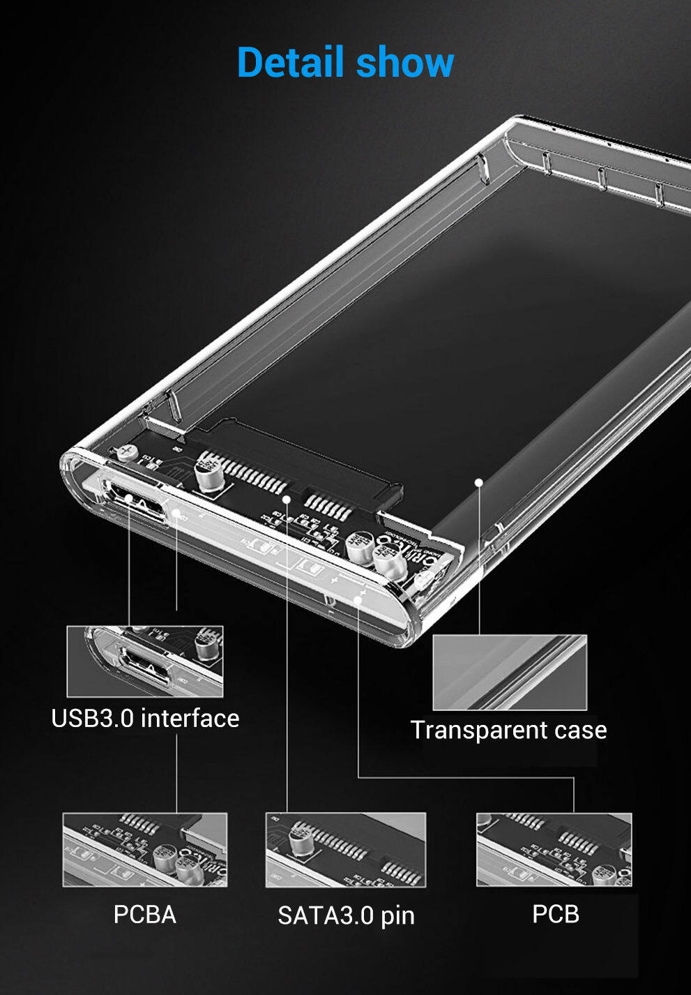 ✨Hộp ổ cứng ORICO 2139U3 2.5" SSD/HDD SATA 3 USB 3.0 trong suốt - Hàng Chính Hãng