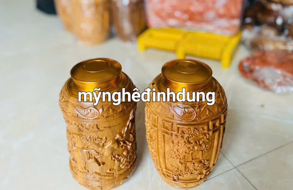 _ Hộp đựng trà chè được làm bằng chất liệu gỗ bách xanh thơm nức liền khối tự nhiên 100% _ Kt cao 20 thân tròn 12cm _ Hộp được khắc nổi tỉ mỉ ,tinh