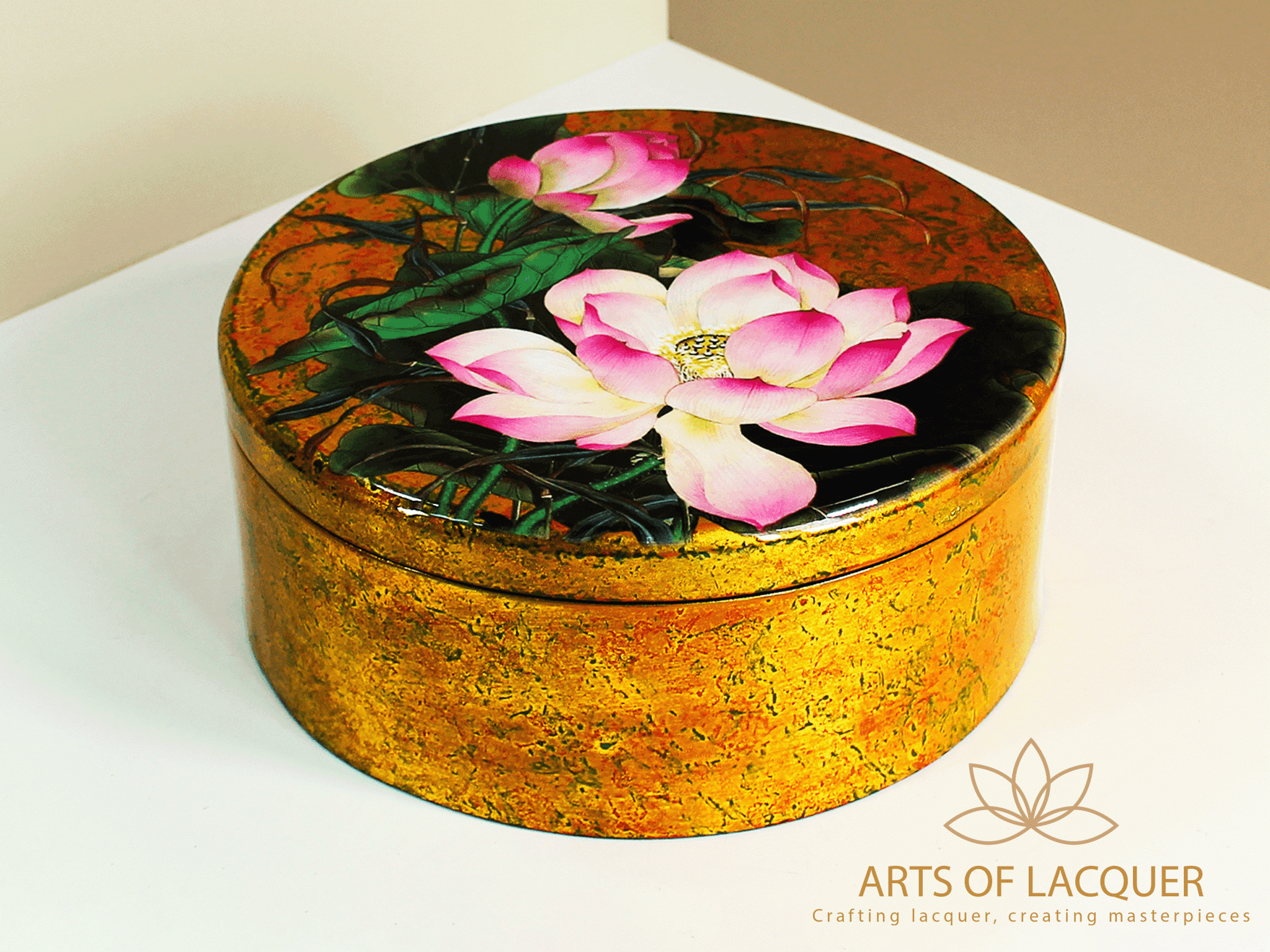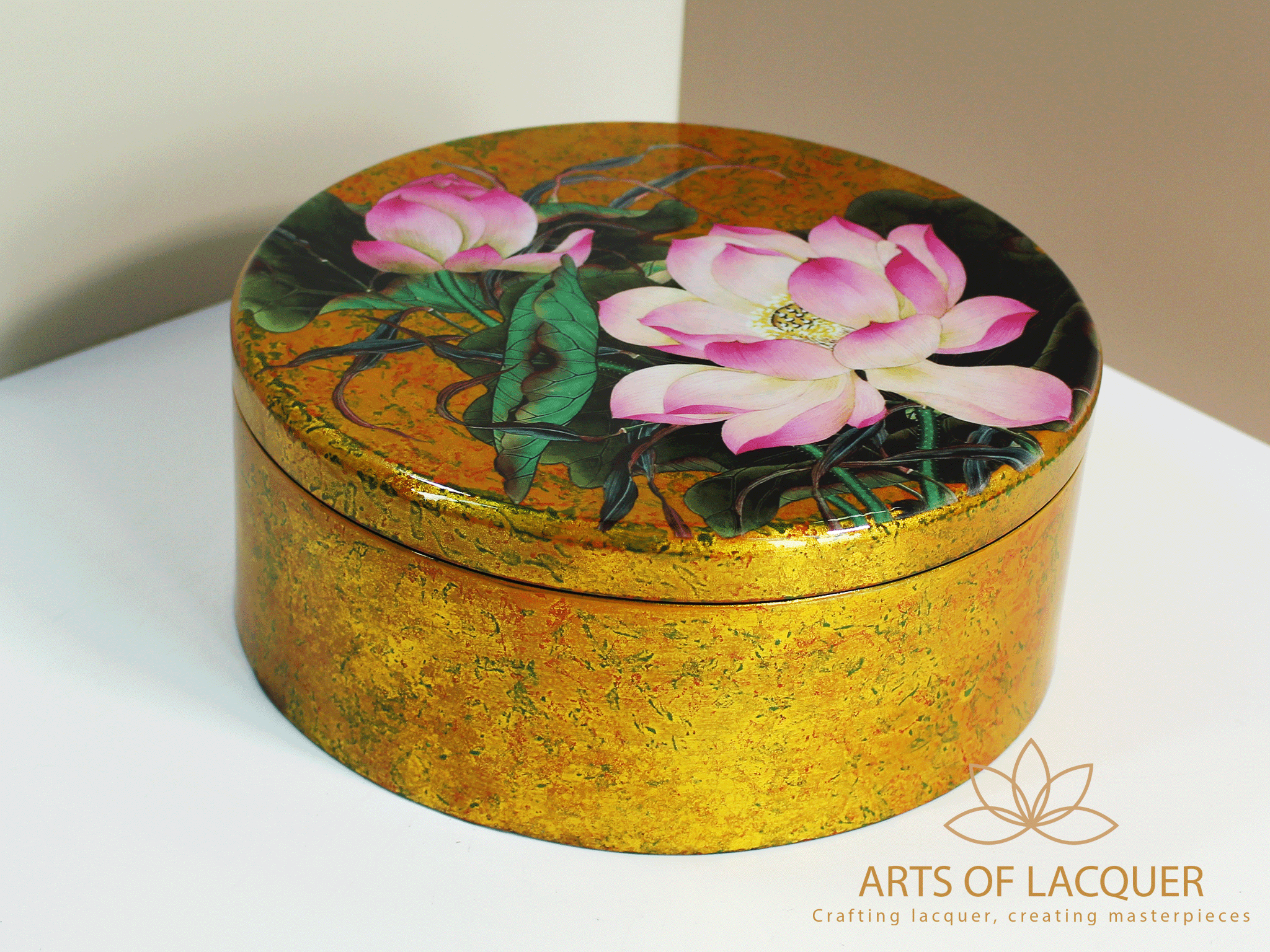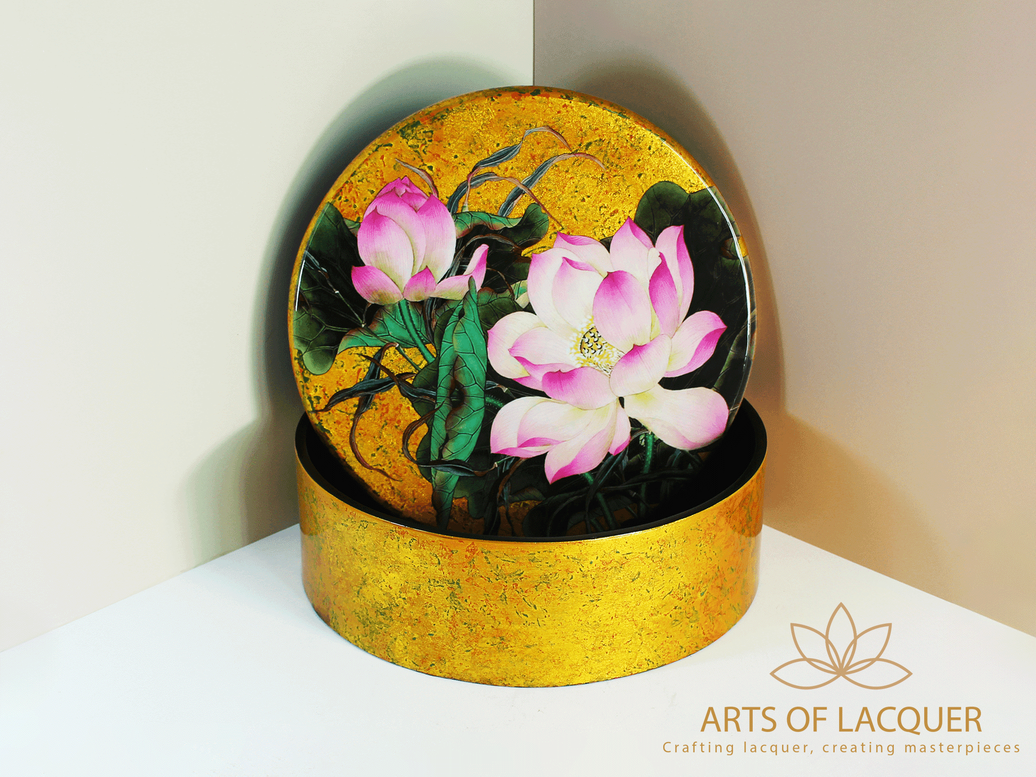 ✨Hộp Tròn Sơn Mài Hoa Sen Hồng Dát Vàng