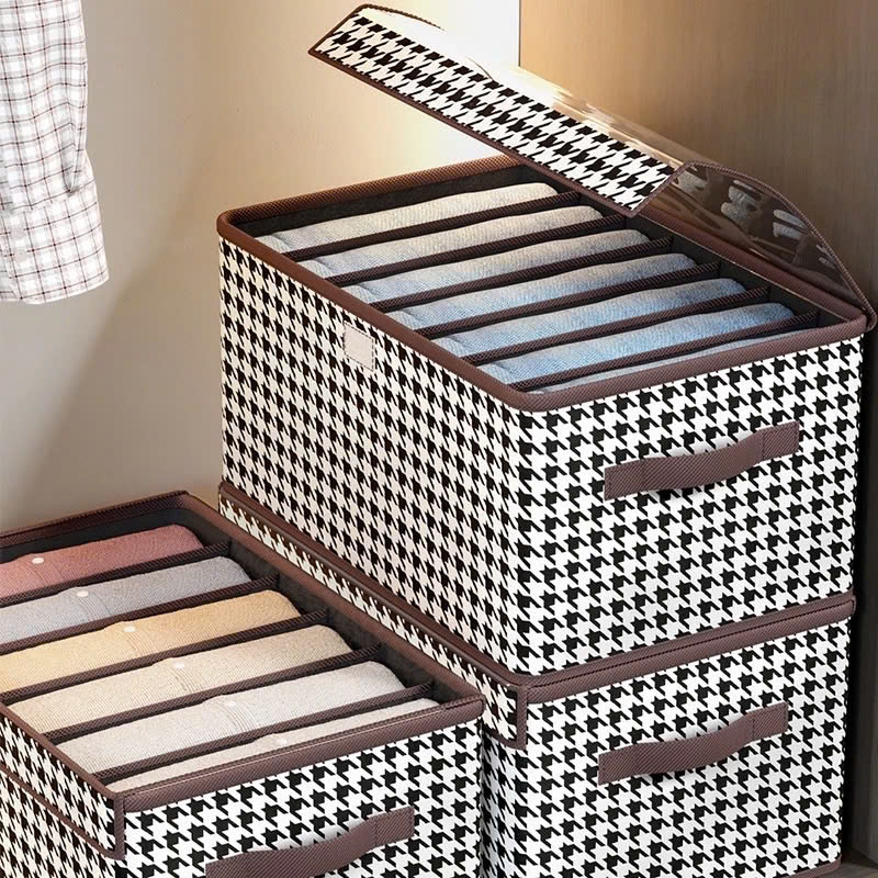 Hộp Vải Đựng Quần Áo 6 Ngăn Cao Cấp - Túi Đựng Quần Áo Có Nắp, Thiết Kế Gọn Gàng