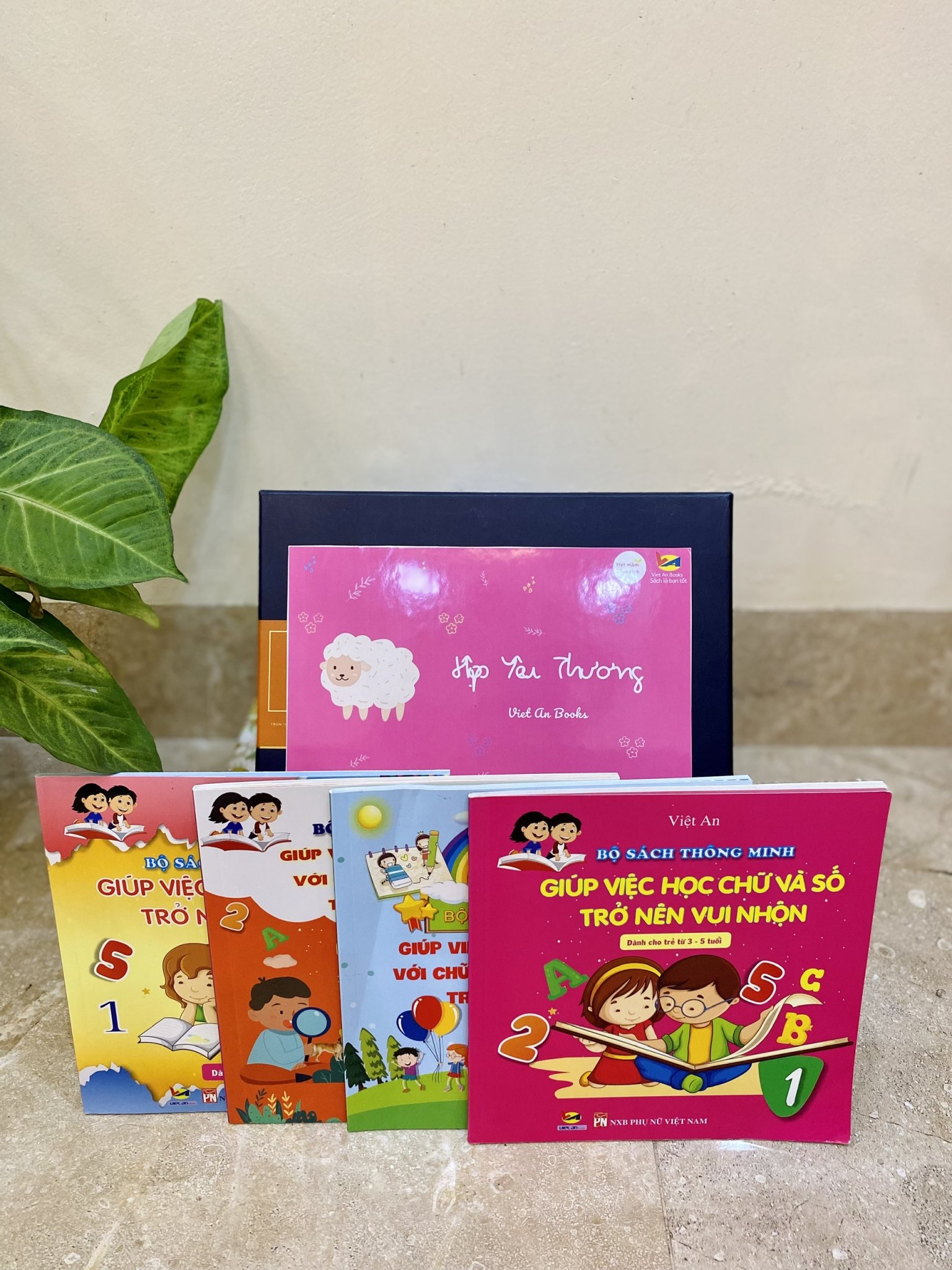 HỘP YÊU THƯƠNG 5 là hộp quà tặng tri thức dành cho bé từ 3 - 6 tuổi với set quà gồm có combo 04 cuốn sách rèn luyện tư duy - phát triển trí thông minh cho bé BỘ SÁCH THÔNG MINH (học và làm quen với chữ và số, với toán tư duy, với hình học) vô cùng hữu ích cho sự phát triển tư duy của bé, bộ Flashcard - thẻ chữ cái và chữ ghép đánh vần tiếng việt giúp bé tập ghép chữ, số và là nền tảng quan trọng cho các bé không còn bỡ ngỡ khi bước vào lớp 1.