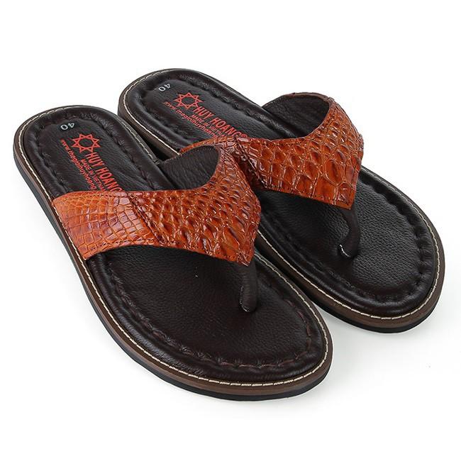 ✨HP7233-34-35-36 - Dép nam Huy Hoàng da cá sấu kiểu kẹp màu đen, nâu đất, vàng bò, nâu đỏ