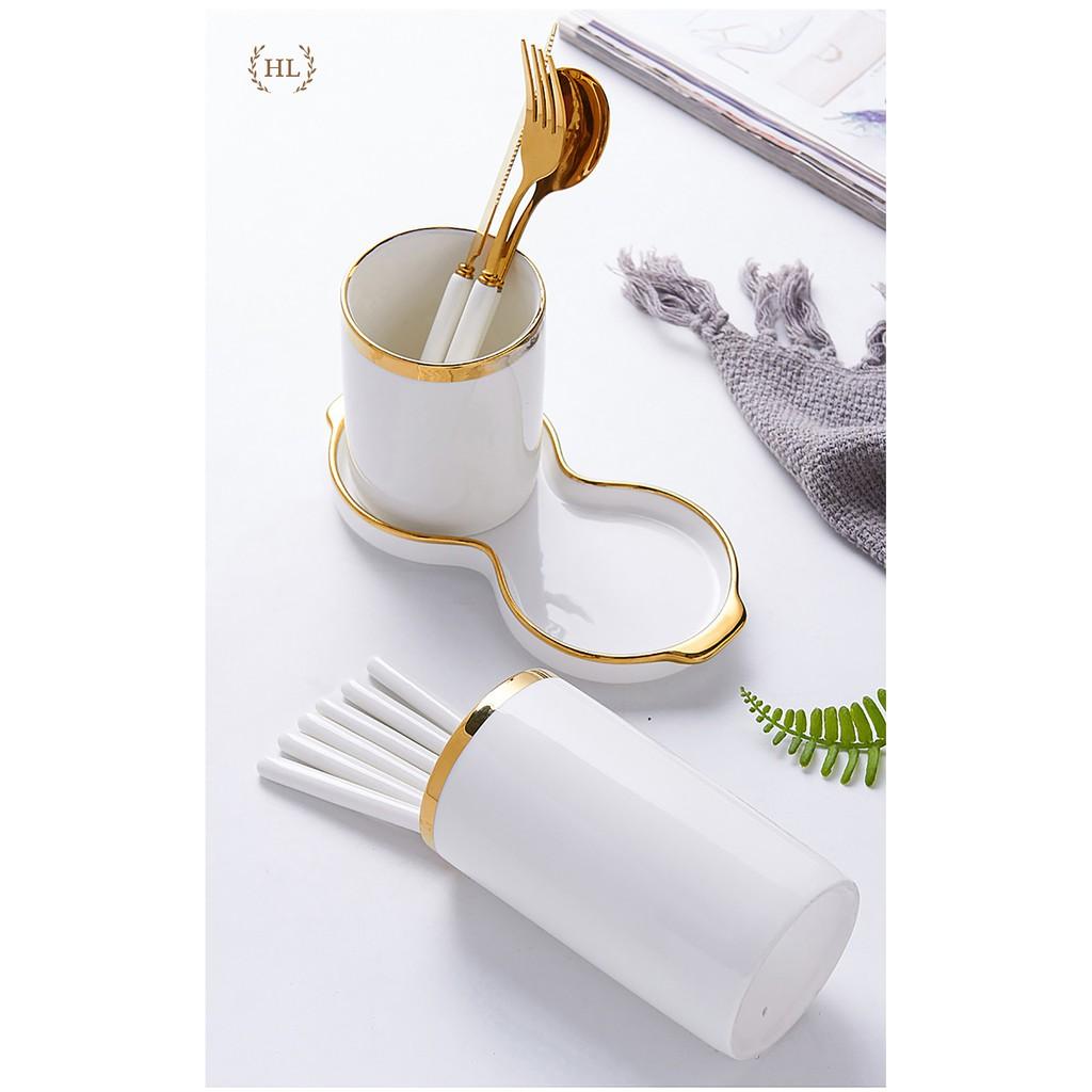 ✨Hũ sứ đựng đũa có khay hứng nước đế liền | ỐNG ĐŨA 2 KẺ VÀNG KIM PHONG CÁCH RETRO 2022