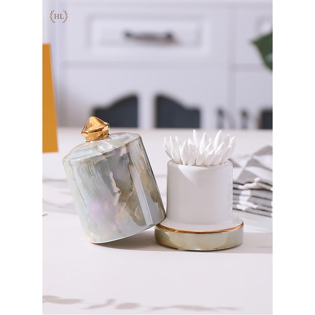 ✨HŨ TĂM SỨ 3D | Lọ Đựng Tăm Vân Đá 3D Chất Liệu Sứ Cao Cấp 2022 | Hũ sứ có nắp đậy vân đá cao cấp kẻ vàng kim