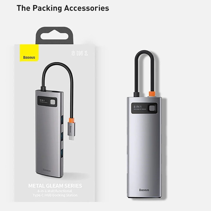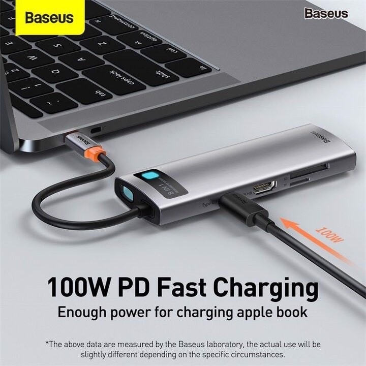 HUB chuyển đổi Baseus 8in1 USB-C To 4K HDMI,PD Charging Port,3 USB 3.0,SD/TF Card