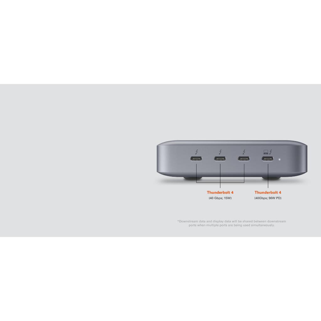 - Cổng Thunderbolt 4: Sản phẩm này cung cấp một cổng Thunderbolt 4 upstream và ba cổng Thunderbolt 4 downstream. Các cổng Thunderbolt 4 downstream có tốc độ truyền dữ liệu lên đến 40Gbps, tốc độ truyền dữ liệu PCIe lên đến 32Gbps, và khả năng sạc 15W. Cổng upstream có khả năng sạc qua đó lên đến 96W.