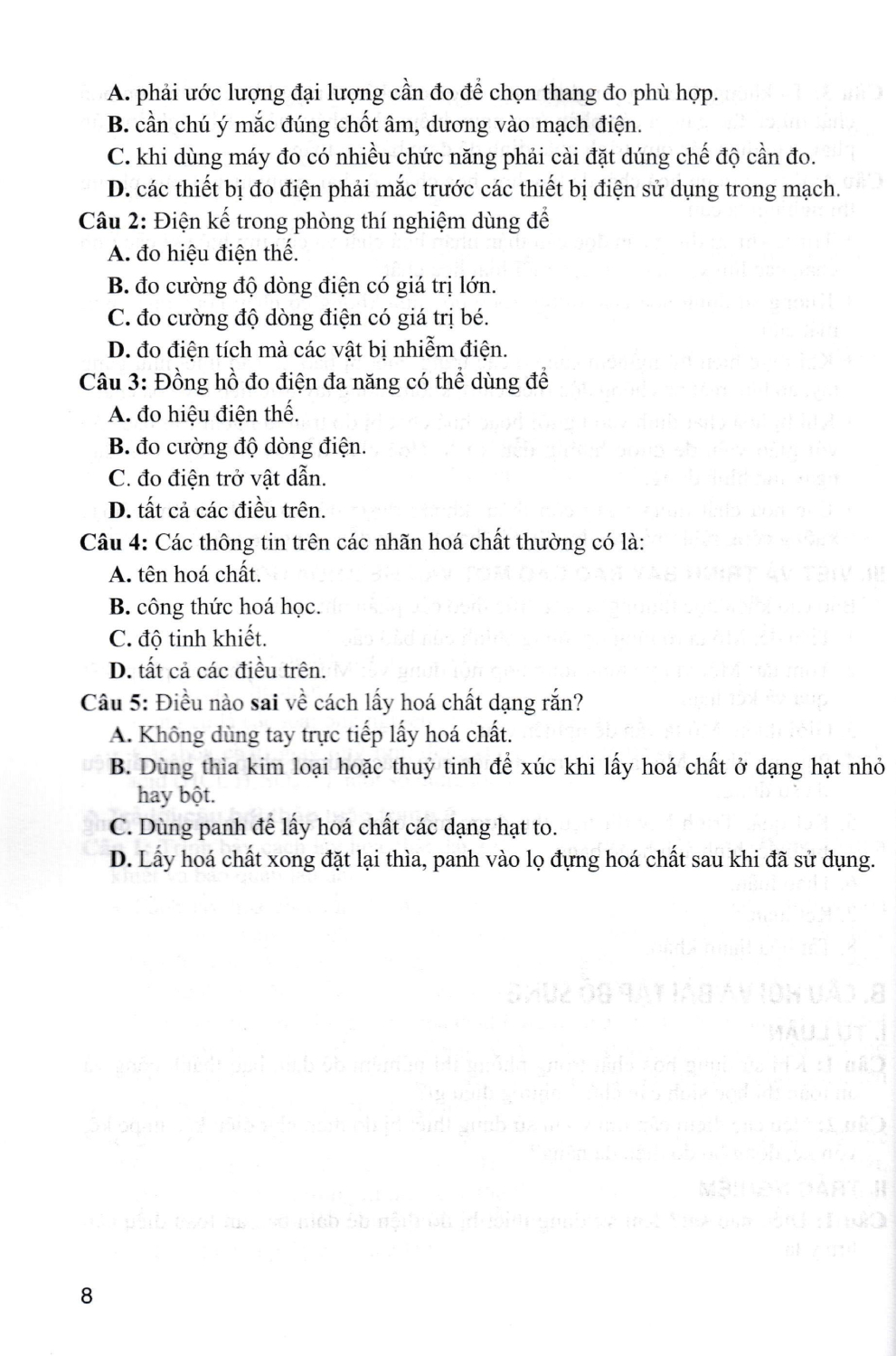 B. CÂU HỎI VÀ BÀI TẬP BỔ SUNG: Sau mỗi bài, chúng tôi đều lựa chọn các câu hỏi và bài tập tiêu biểu nhằm rèn luyện, củng cố, mở rộng, nâng cao các kiến thức đã học, đồng thời để các em tự kiểm tra kiến thức. Các câu hỏi bài tập này được cho dưới dạng tự luận và trắc nghiệm.
