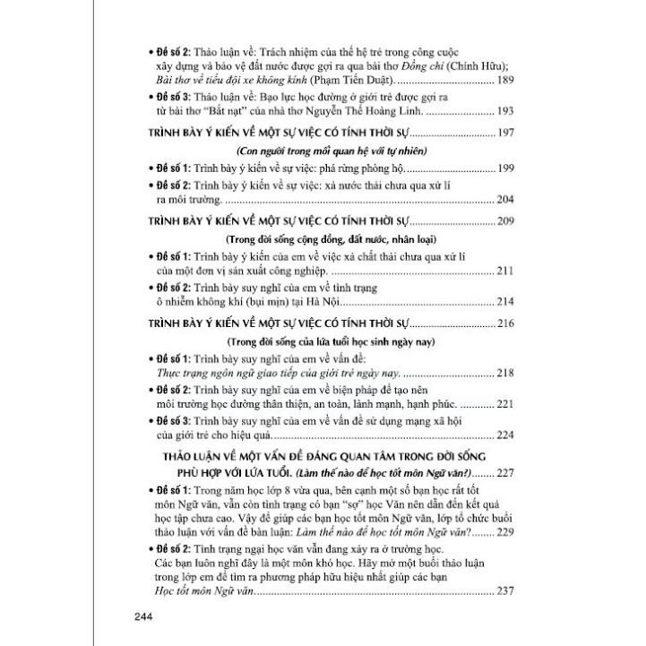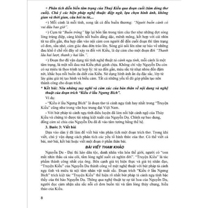- Phần đề minh họa: các dàn ý và bài tham khảo (gợi ý dàn bài và bài văn hoàn chỉnh) hướng dẫn học sinh kĩ năng viết, nói – nghe. Cuốn sách là tâm huyết của nhóm tác giả đã nghiên cứu, trăn trở trong một thời gian dài. Tuy nhiên, do giới hạn về dung lượng và thời gian nên không thể chuyển tải hết được các ý tưởng. Vì vậy, khi sử dụng quý thầy cô và các em học sinh cần linh hoạt, sáng tạo để phù hợp với từng đối tượng và mức độ nhận thức của học sinh. Để sử dụng hiệu quả cuốn sách này, thầy cô và các em nên kết hợp chặt chẽ với sách giáo khoa. Trong quá trình biên soạn, cuốn sách không tránh khỏi những thiếu sót nhất định. Nhóm tác giả rất mong nhận được ý kiến đóng góp chân thành từ các bạn đọc gần xa đặc biệt là các quý thầy cô cùng các em học sinh thân yêu để cuốn sách được hoàn thiện hơn trong lần tái bản sau. Tác giả: Nhiều tác giả Công ty phát hành: nhà sách Hồng Ân Số trang: 244 Nhà Xuất Bản: Đại Học Quốc Gia Hà Nội Năm xuất bản: 2024