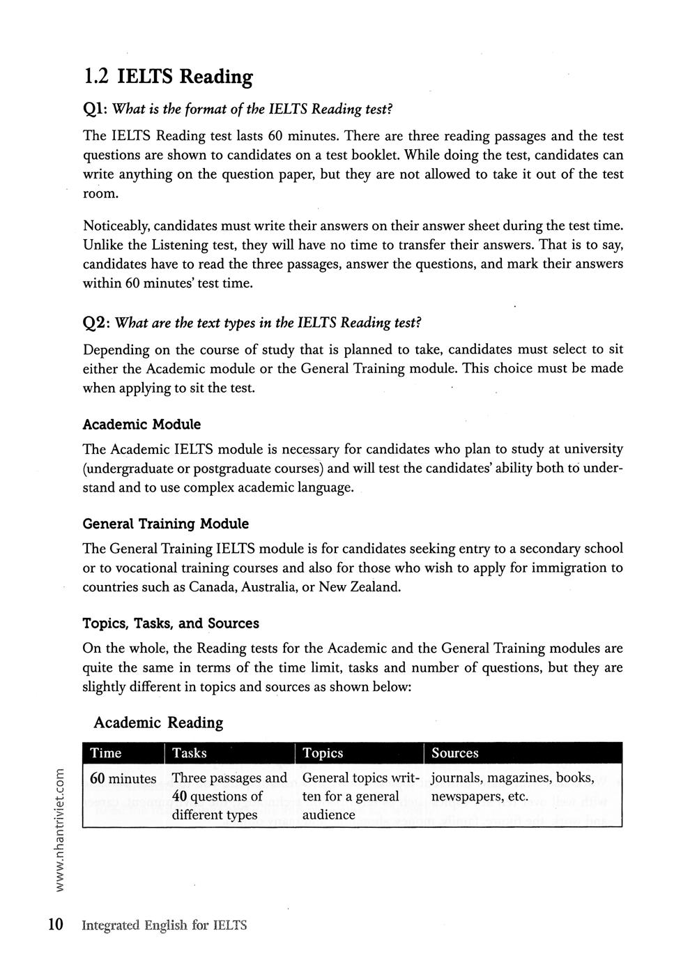 Cuốn sách giúp người học định hướng và làm quen với từng dạng bài của của từng kỹ năng trong một bài thi IELTS. Bên cạnh việc phân tích định dạng bài thi, cuốn