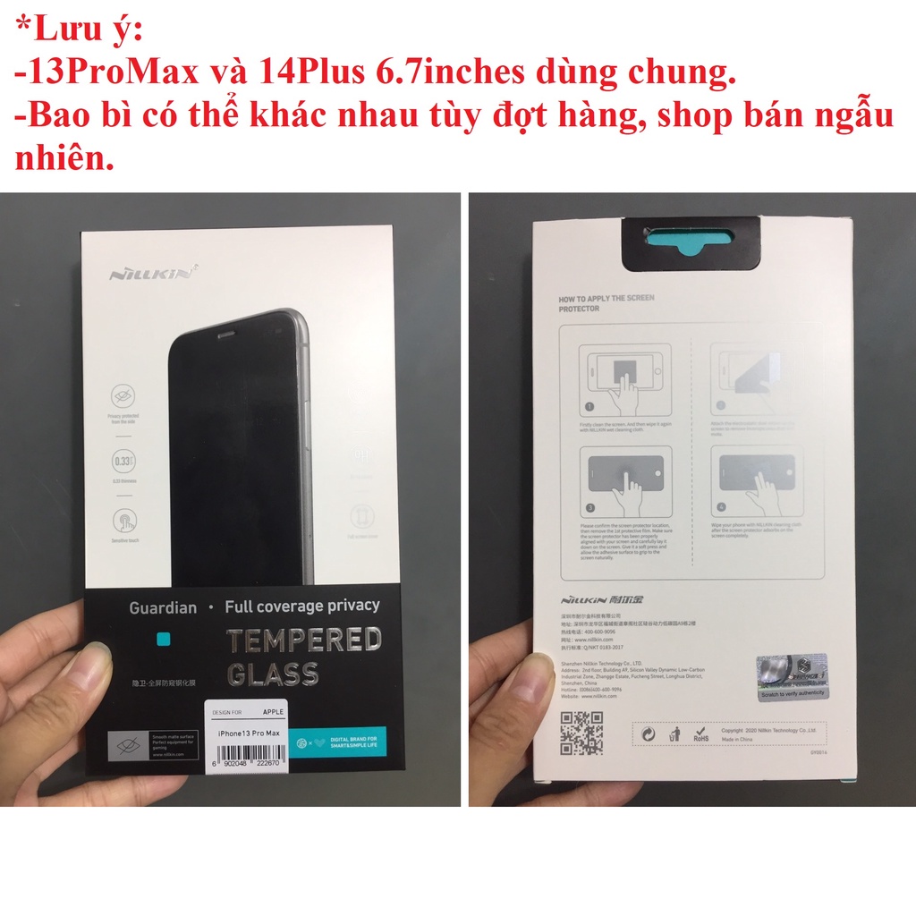 ✨[iP 13Pro Max /14 Plus ] Cường lực chống nhìn trộm full màn hình Nillkin Guardian _ Hàng chính hãng