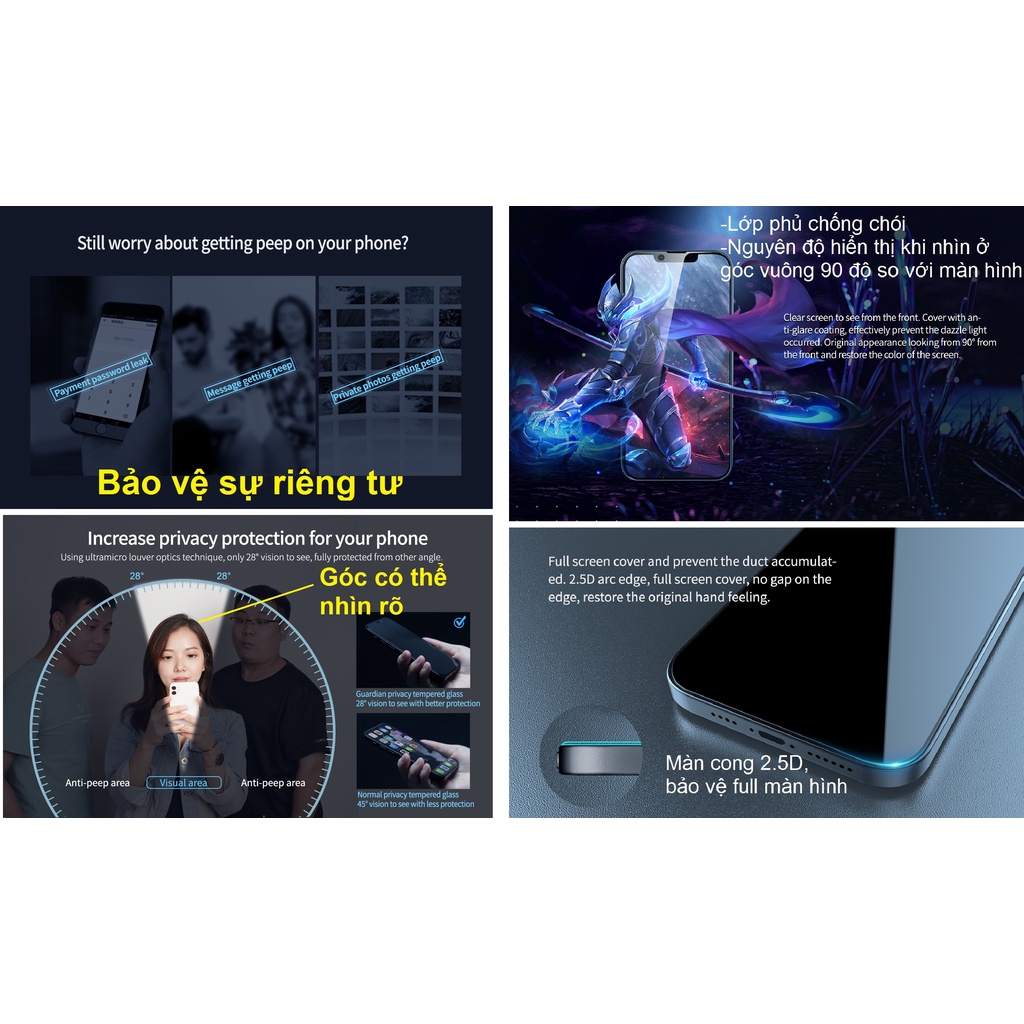 Dán cường lực chống nhìn trộm iPhone 13 Pro Max / 13 / 13 Pro / 12 Pro Max / 12 Nillkin Guardian