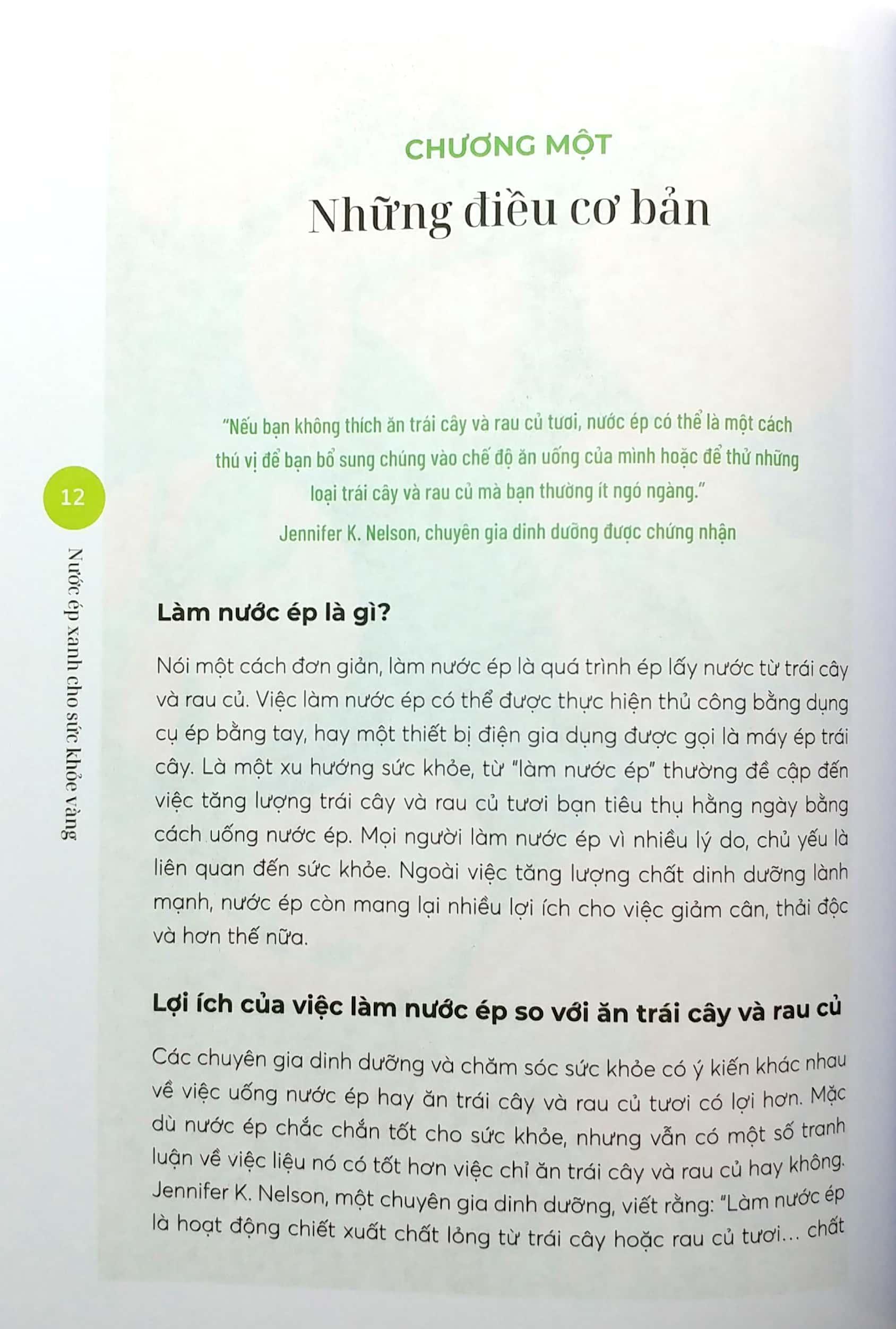 Cuốn sách Juice - Nước ép xanh cho sức khỏe vàng sẽ cung cấp cho người đọc những kiến thức cơ bản để bắt đầu hành trình juicing của riêng mình, bắt đầu từ: