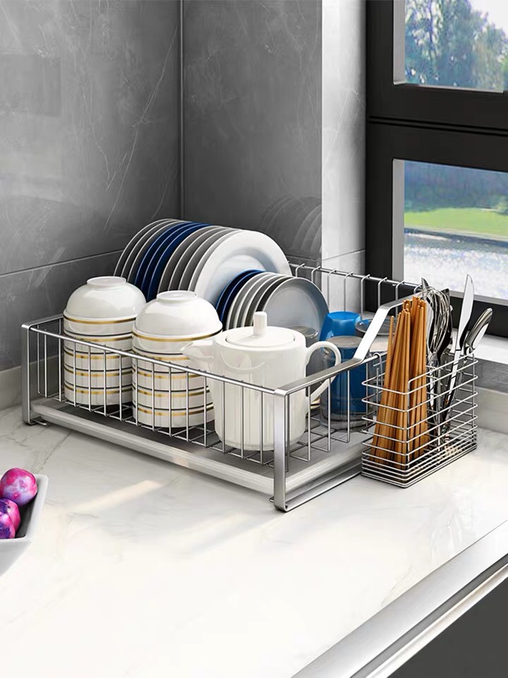 ✨Kệ chén đa năng 1 tầng kèm ống đũa Inox 304 Hobby Home Decor KC2