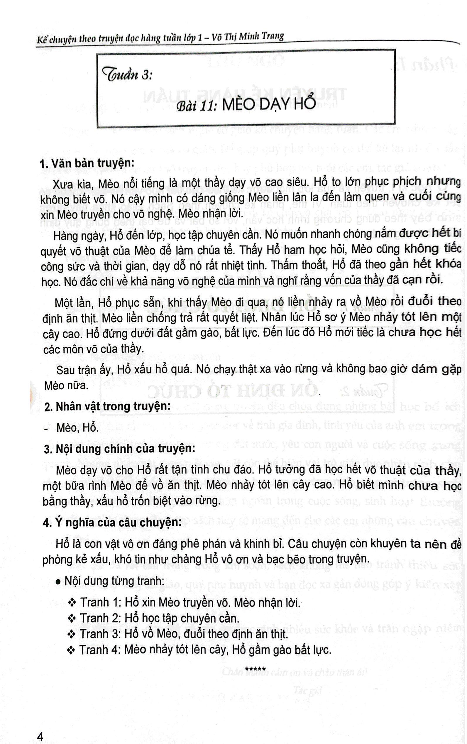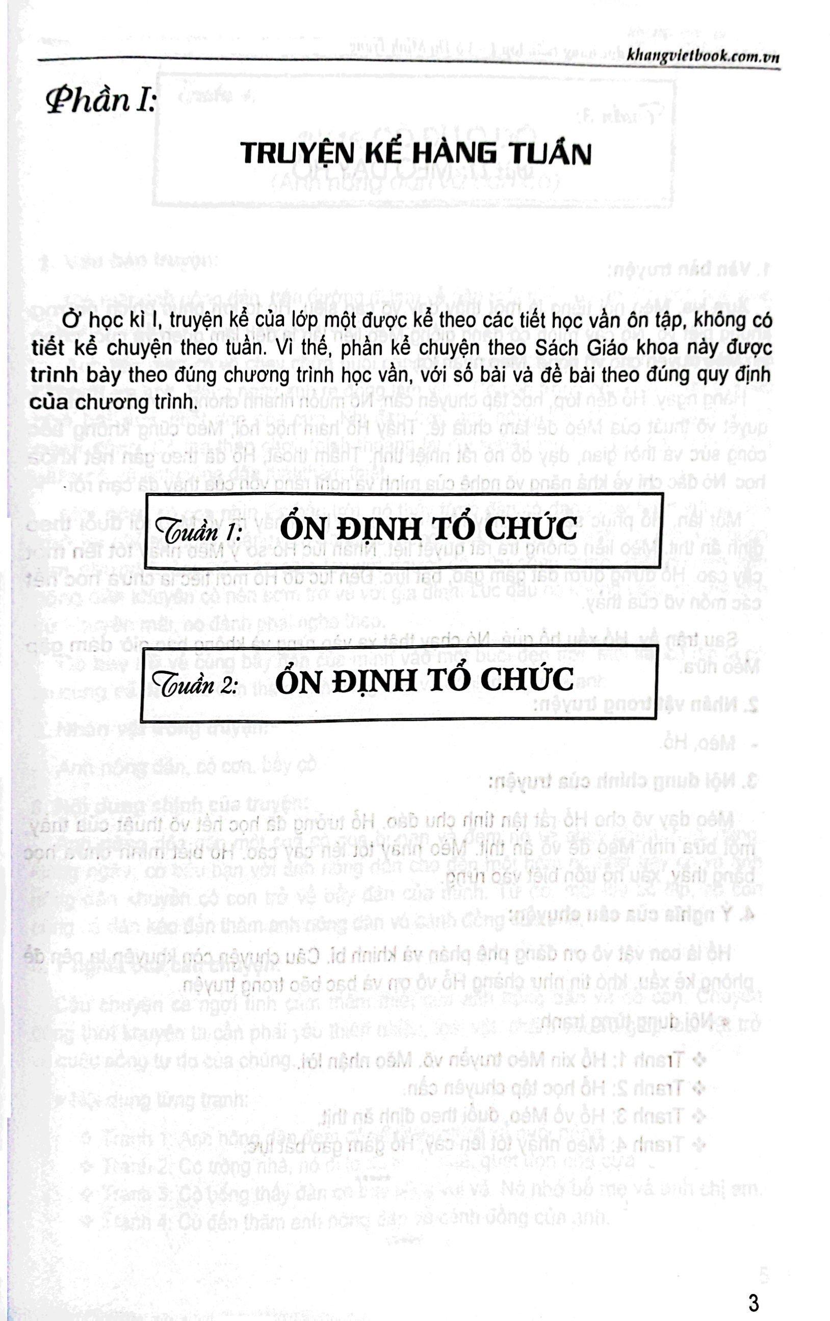 Sách được soạn theo đúng chương trình kể chuyện của lớp 1, theo từng bài của chương trình Tiếng Việt. Sách trình bày thành hai phần: