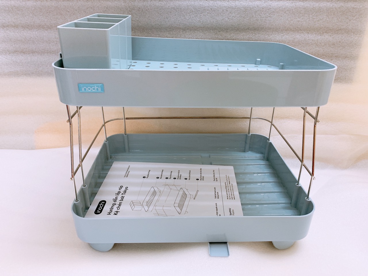 ✨Kệ Để Chén Bát Nhựa Inox 2 Tầng Inochi Có Khay Thoát Nước Thông Minh Dùng Để Làm Giá Úp Bát Đĩa Chén Đũa Trên Chậu Rửa ( Giao màu ngẫu nhiên ) - ANTH250