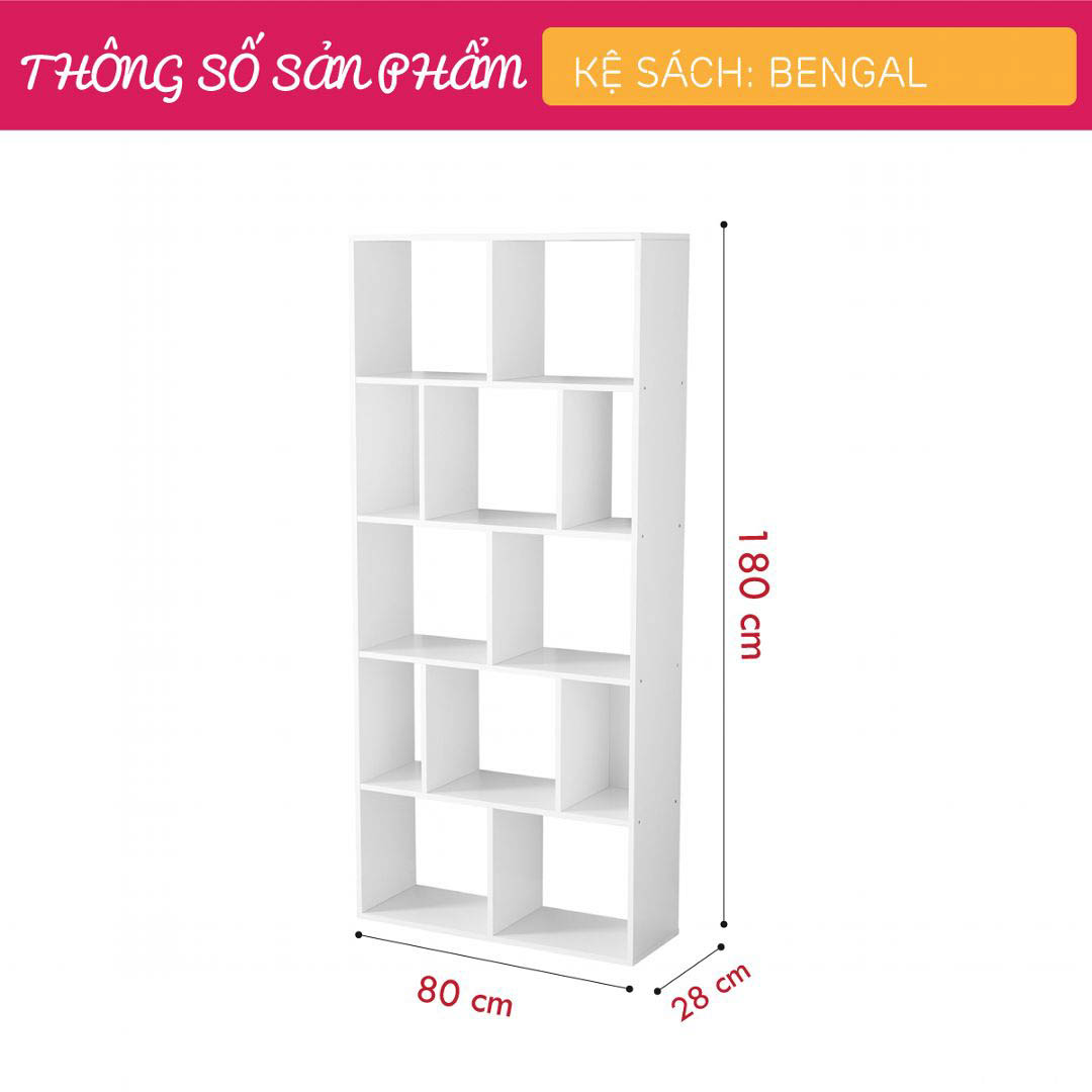 Kệ sách SMLIFE Bengal được ví như một tác phẩm nghệ thuật với phong cách đơn giản sẽ giúp bạn xắp sếp những cuốn sách một cách sành điệu và độc đáo. Kệ sách Bengal mang đến sự tinh tế, hiện đại cho phòng khách của bạn và đồng thời cung cấp một không gian lớn cho các vật dụng trang trí. Sản phẩm phù hợp cho mọi phong cách trang trí căn hộ và văn phòng làm việc. Sử dụng vật liệu ván ép công nghiệp MDF chống ẩm phủ Melamine cao cấp giúp kệ sách SMLIFE có độ bền cao, chống trầy và chống ẩm rất tốt. Bạn có thể tự lắp đặt sản phẩm dễ dàng với các phụ kiện và hướng dẫn đi kèm. ĐẶC ĐIỂM SẢN PHẨM: