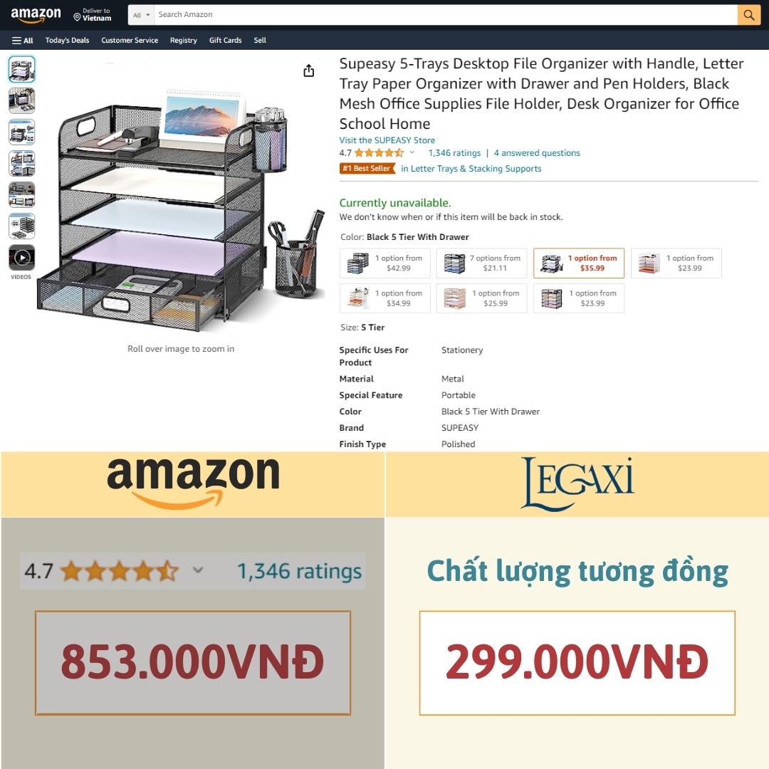 ✨Kệ đựng hồ sơ tài liệu giấy tờ kim loại để bàn 5 tầng kèm khay đựng bút thước gôm ghim bấm tủ kéo tiện dụng thông minh Legaxi