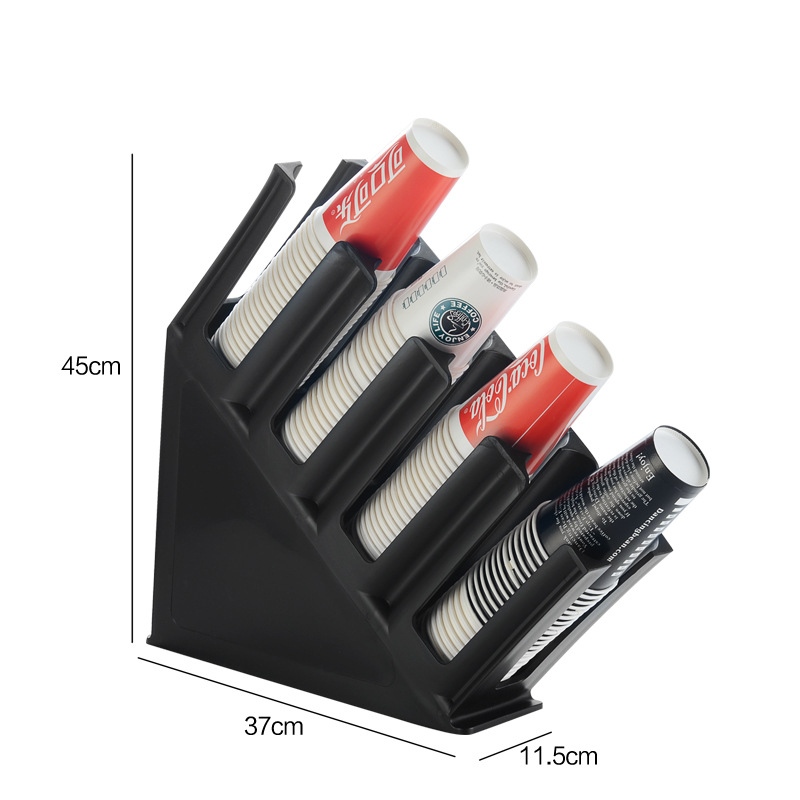Kệ đựng ly cafe, cốc trà sữa nhựa ABS đúc nguyên khối loại xéo 4 ngăn úp nghiêng