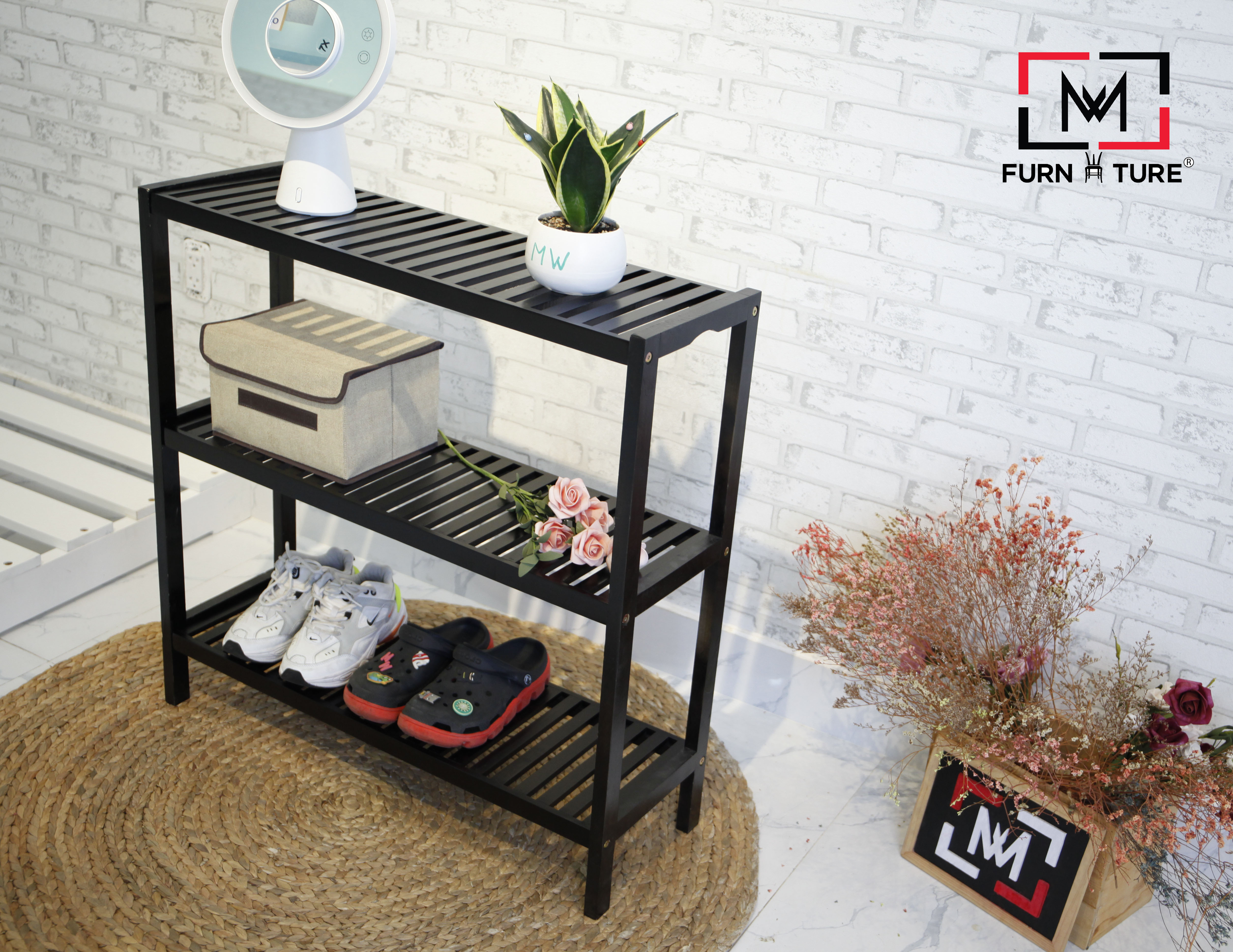 Kệ gỗ để giày hiện đại SMLIFE Rashida là sự bổ sung hoàn hảo cho phòng khách căn hộ hay văn phòng làm việc của bạn. Kệ gỗ Rashida giúp bạn tổ chức gọn gàng