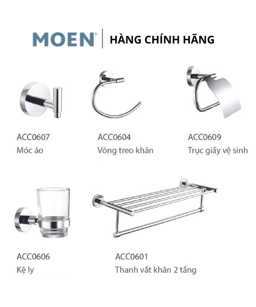 - Sản phẩm mang đến cho những người đam mê phong cách hiện đại , làm nổi bật tăng tính thẩm mỹ cho nhà tắm của họ. Các sản phẩm khác trong dòng KARON Thanh vắt khăn 2 tầng-ACC0601 Thanh vắt khăn đôi-ACC0602 Thanh vắt khăn đôi-ACC0603 Vòng teo khăn-ACC0604 Cọ phòng tắm-ACC0605 Móc áo đơn-ACC0607 Móc khăn đôi-ACC0608 Thông tin thương hiệu MOEN