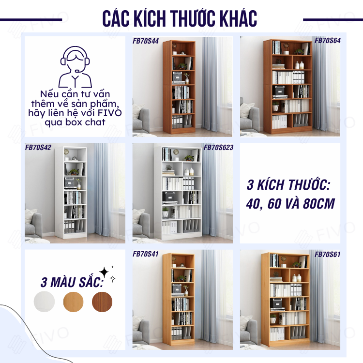 ✨Kệ Sách Đứng Để Sàn FIVO Mã FB70 Chất Liệu Gỗ MDF Chống Thấm Bề Mặt Cực Tốt, Chia Ngăn Tiện Lợi, Kiểu Dáng Hiện Đại (Kích thước 80x24x178cm)