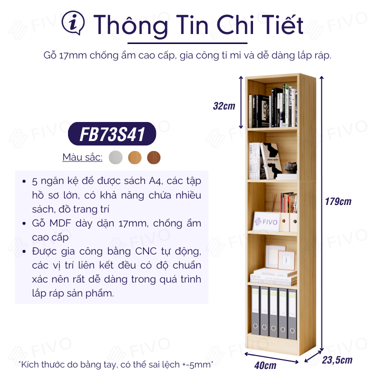 ✨Kệ Sách Gỗ 5 Tầng Màu Gỗ FB73 FIVO Gỗ Chống Ẩm Cao Cấp Dày Dặn, Tấm Lưng Chắc Chắn, Để Được Sách Vở Tài Liệu Kích Thước Lớn