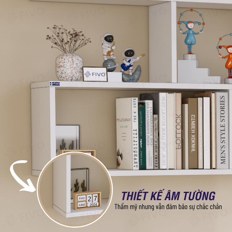 ✨Kệ Sách Gỗ Treo Tường FIVO FB44 Đa Năng, Thiết Kế Âm Tường, Chất Liệu Gỗ Dày Chống Ẩm, Dễ Dàng Lắp Ráp