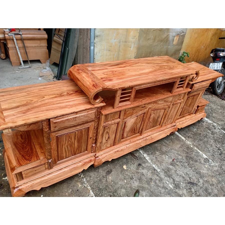 Kệ Tivi Vòm (Sừng Trâu) 2m4 Gỗ Hương Đá Ván Cánh Dày 1.3 Phân