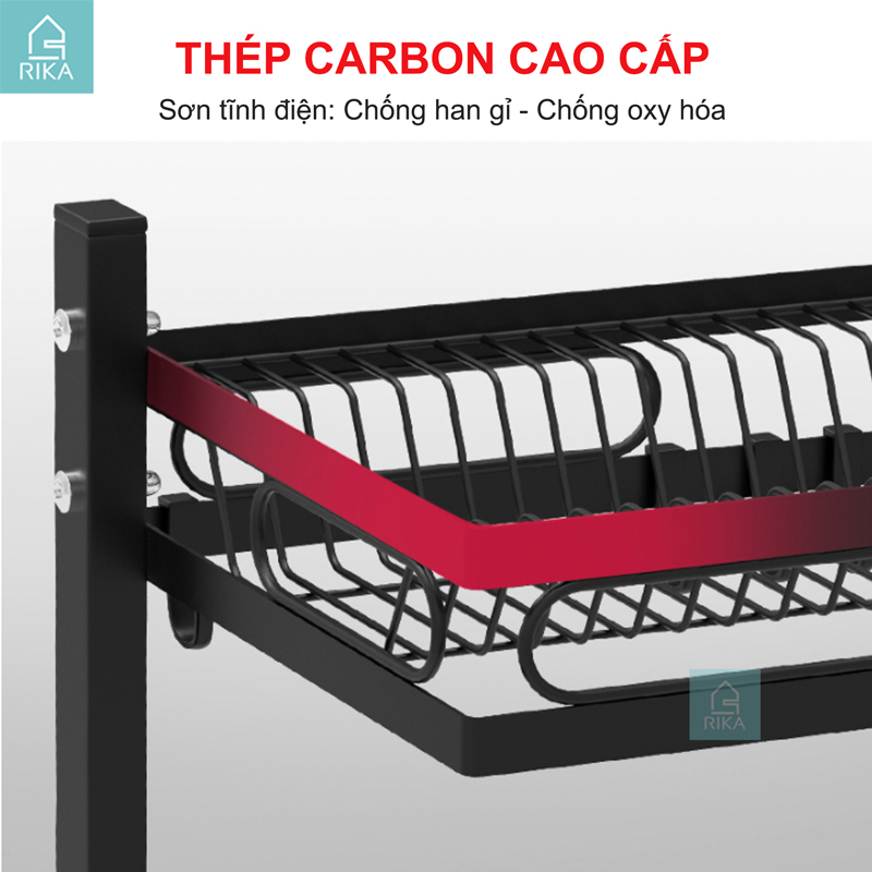 ✨Kệ úp chén bát đĩa đa năng thông minh trên bồn rửa Rika KGB thép carbon không gỉ sơn đen tĩnh điện,1 2 tầng chịu lực cao