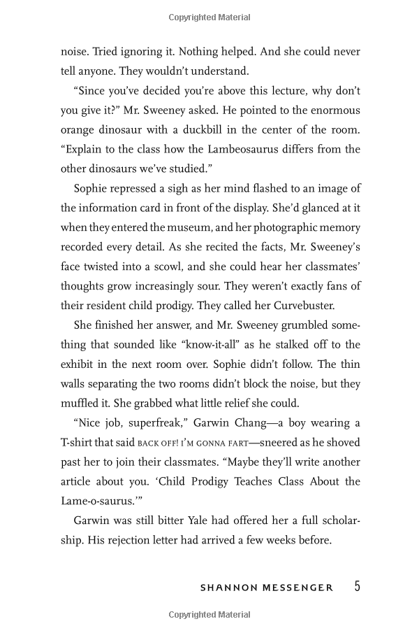 In this riveting debut, a telepathic girl must figure out why she is the key to her brand-new world--before the wrong person finds the answer first. Twelve-year-old Sophie has never quite fit into her life. She's skipped multiple grades and doesn't really connect with the older kids at school, but she's not comfortable with her family, either. The reason? Sophie's a Telepath, someone who can read minds. No one knows her secret--at least, that's what she But the day Sophie meets Fitz, a mysterious (and adorable) boy, she learns she's not alone. He's a Telepath too, and it turns out the reason she has never felt at home is that, isn't. Fitz opens Sophie's eyes to a shocking truth, and she is forced to leave behind her family for a new life in a place that is vastly different from what she has ever known. But Sophie still has secrets, and they're buried deep in her memory for good reason: The answers are dangerous and in high-demand. What is her true identity, and why was she hidden among humans? The truth could mean life or death--and time is running out.