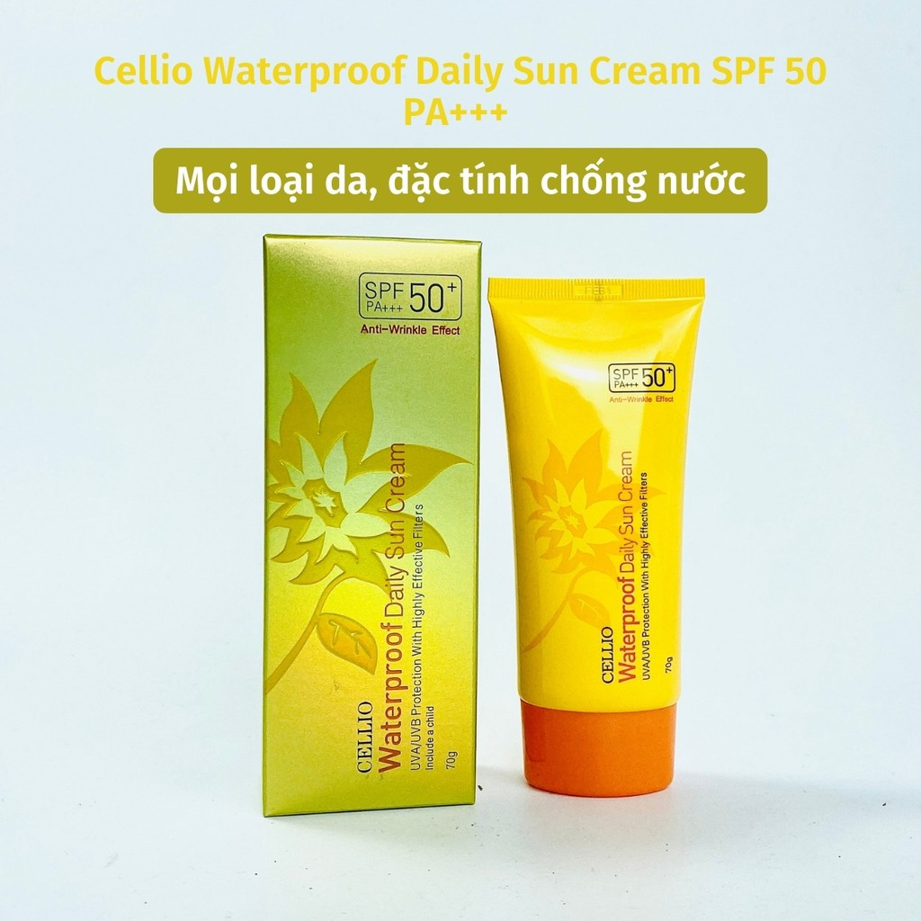 - Kem chống nắng Cellio Waterproof Daily Sun Cream (Màu Vàng)
