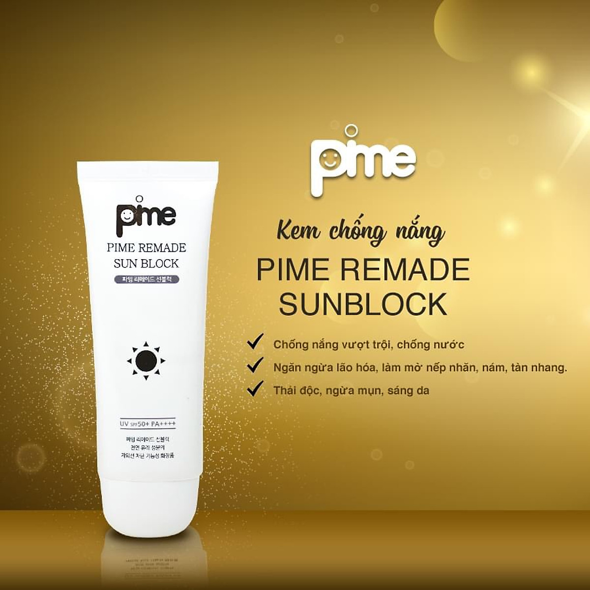 Ngoài tác dụng chống nắng, kem chống nắng Pime với chỉ số chống nắng vượt trội, nổi bật hơn những dòng sản phẩm khác bởi khả năng dưỡng da của nó. Với chiết xuất từ các thành phần thiên nhiên như chiết xuất rễ cây mãn đình hồng, lô hội, dâu tằm trắng,… không trôi khi gặp nước, phù hợp và an toàn với mọi loại da.