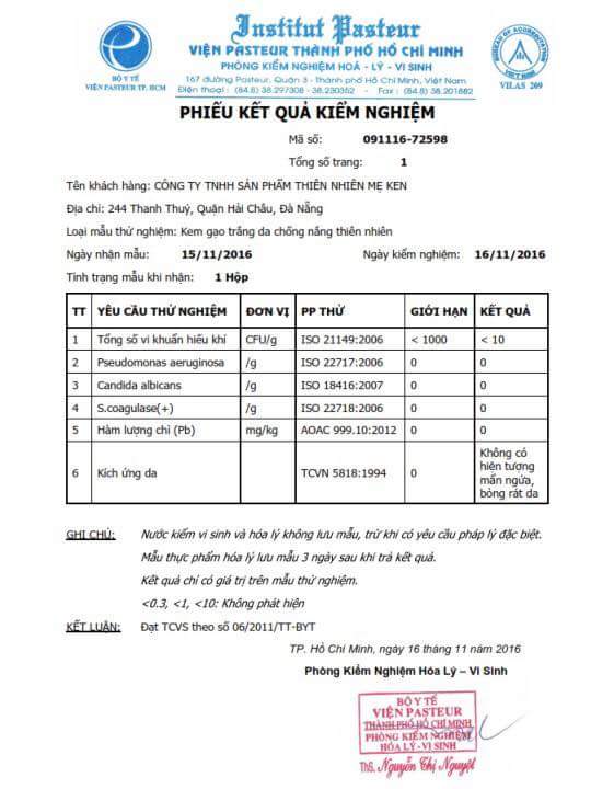 KEM GẠO MẸ KEN 30ml (HOÀN TOÀN THIÊN NHIÊN – AN TOÀN TUYỆT ĐỐI CHO DA BẦU VÀ SẢN PHỤ CHO CON BÚ) Đã được kiểm định tại VIỆN PASTEUR HOÀN TOÀN KHÔNG