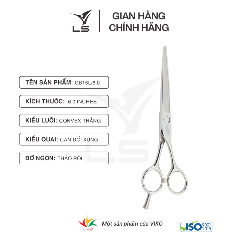 Mua tại TiktokKéo cắt tóc LS là một thương hiệu được sản xuất bởi Công ty TNHH Dụng cụ cắt Việt Hàn (Viko cutting tools Company limited) - đáp ứng đầy đủ các tiêu chuẩn quốc tế. Kéo LS thuộc dòng sản phẩm phổ thông, hướng tới đại đa số khách hàng trung bình tại các tỉnh thành trong cả nước. Với hệ thống bán hàng rộng khắp được xây dựng trong 14 năm phát triển, Kéo LS luôn nỗ lực phục vụ khách hàng một cách thuận tiện nhất. THÔNG TIN SẢN PHẨM KÉO CẮT TÓC LS CB15L/6.0