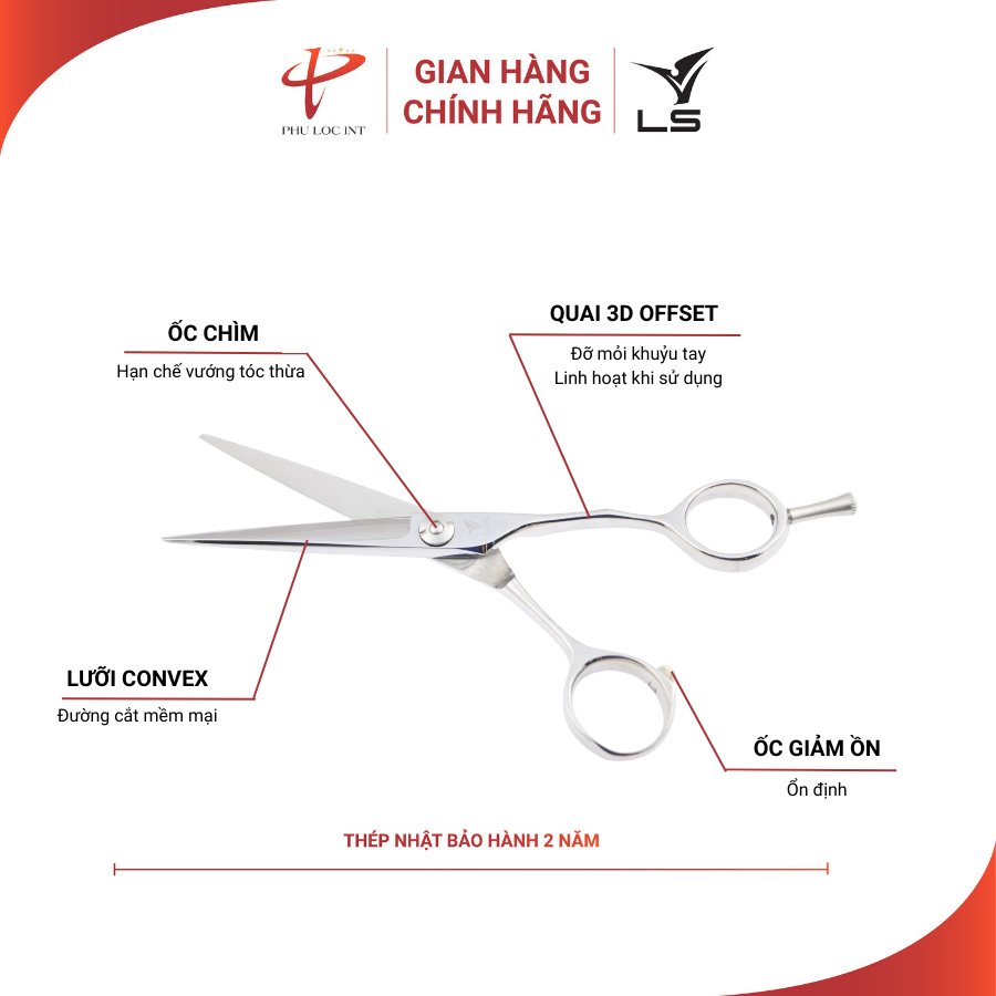 ✨Kéo cắt tóc VLS JP551 lưỡi convex thẳng quai offset vênh đỡ ngón tháo rời - Hàng chính hãng