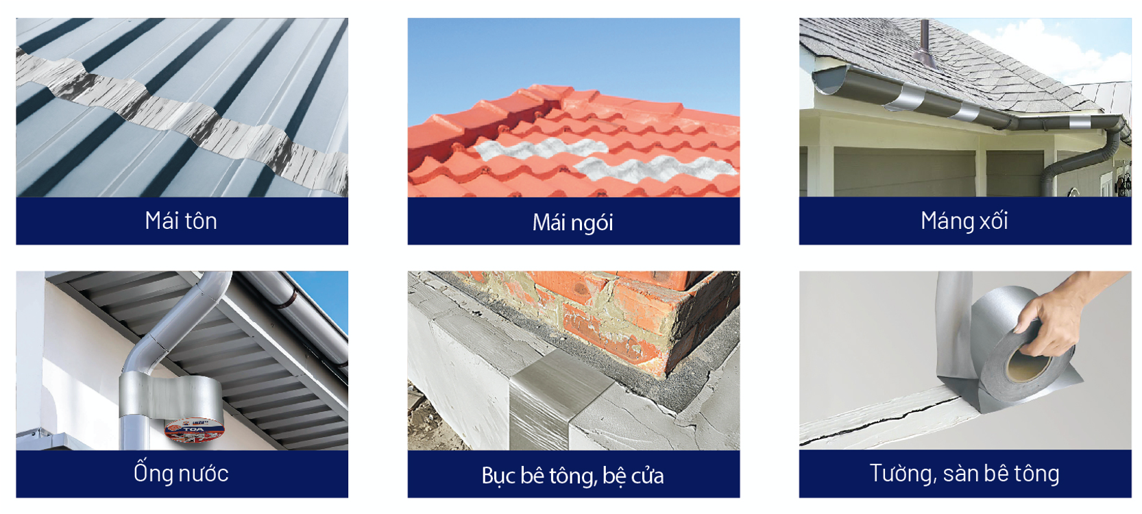 Với những tính năng vượt trội như trên, TOA Smart TapeSeal được sử dụng để trám và sửa chữa các mối nối, chống thấm nước như: mái nhà, các vết nứt tòa nhà, máng xối, ống nước,… cho hiệu quả cao và chi phí thấp.
