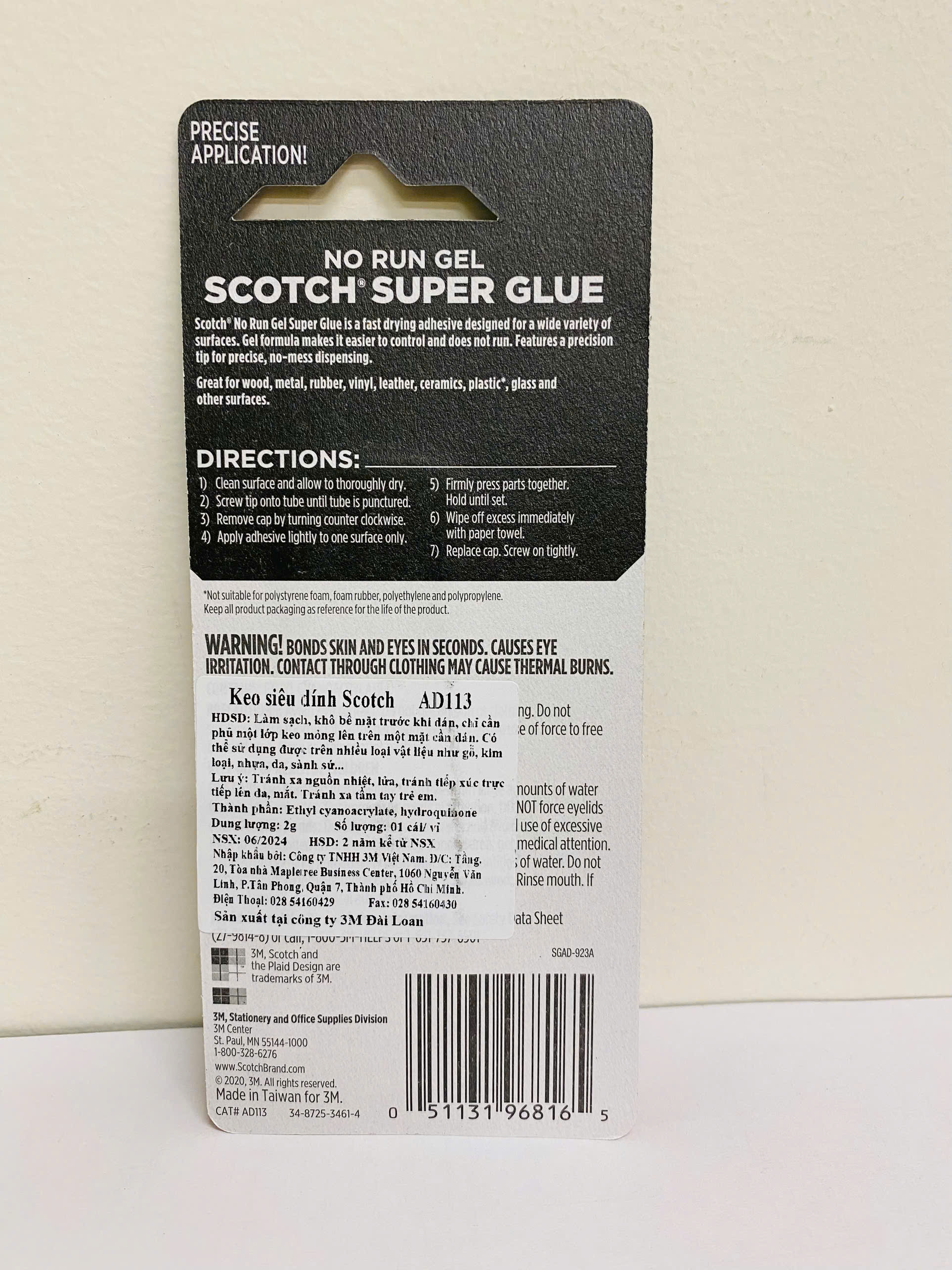 Keo dán đa năng siêu dính Scotch 3M AD113 *Thông số kỹ thuật: Thương hiệu: 3M Xuất xứ thương hiệu: Mỹ Sản xuất tại: Đài Loan Mã sản phẩm: AD113 Quy cách: 2g/tuýp, 12 tuýp/hộp
