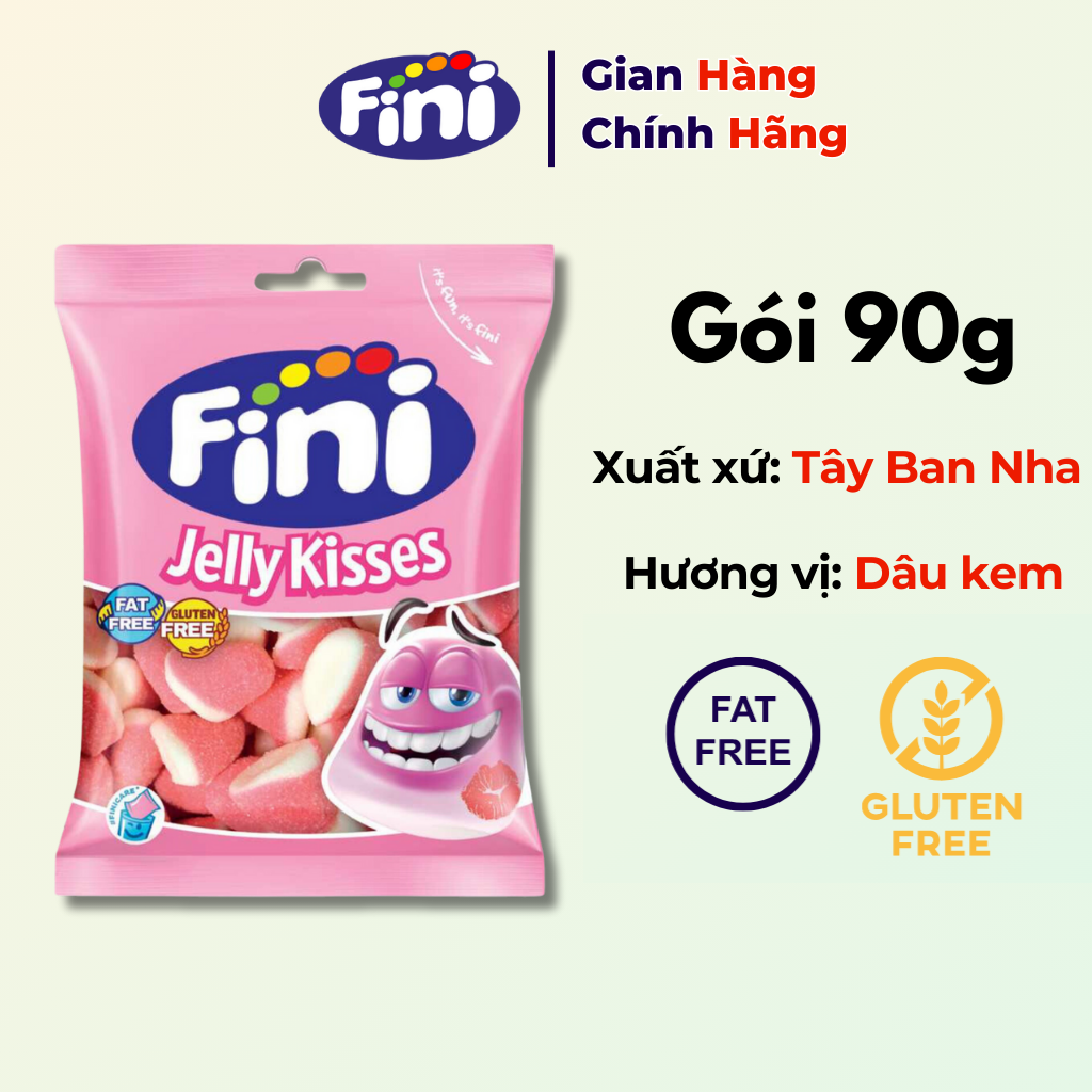 - Kẹo dẻo FINI Jelly Kisses 90g với vị dâu & kem chua chua ngọt ngọt siêu ngon. Độ dai và mềm vừa phải, phù hợp mọi lứa tuổi.