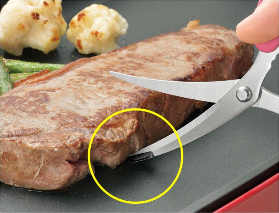 • Lưỡi kéo dày 2mm sắc bén nên chỉ cần dùng một lực nhẹ cũng có thể cắt được các loại thực phẩm một cách dễ dàng.