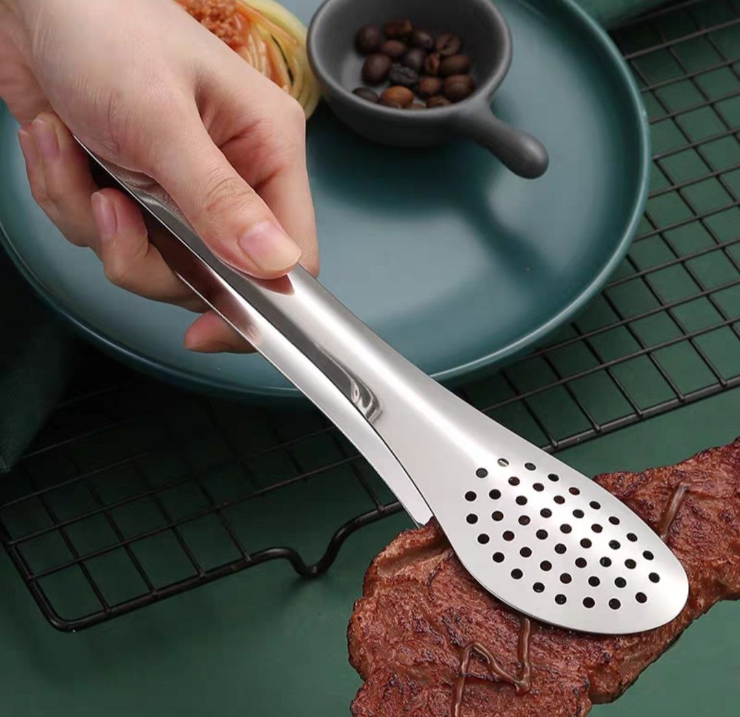 ✨Kẹp gắp thức ăn bằng inox đầu tròn có nhiều lỗ ráo mỡ - nhiều cỡ 18cm - 23cm - 28cm
