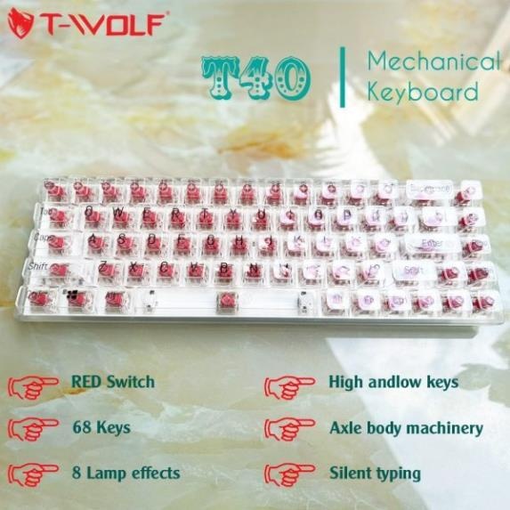 MÔ TẢ SẢN PHẨM Bàn phím cơ Red Switch T-WOLF T40 *Bàn phím cơ Red Switch T-Wolf T40 là dòng sản phẩm cao cấp nhất của T-Wolf, được trang bị Red Switch có độ