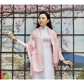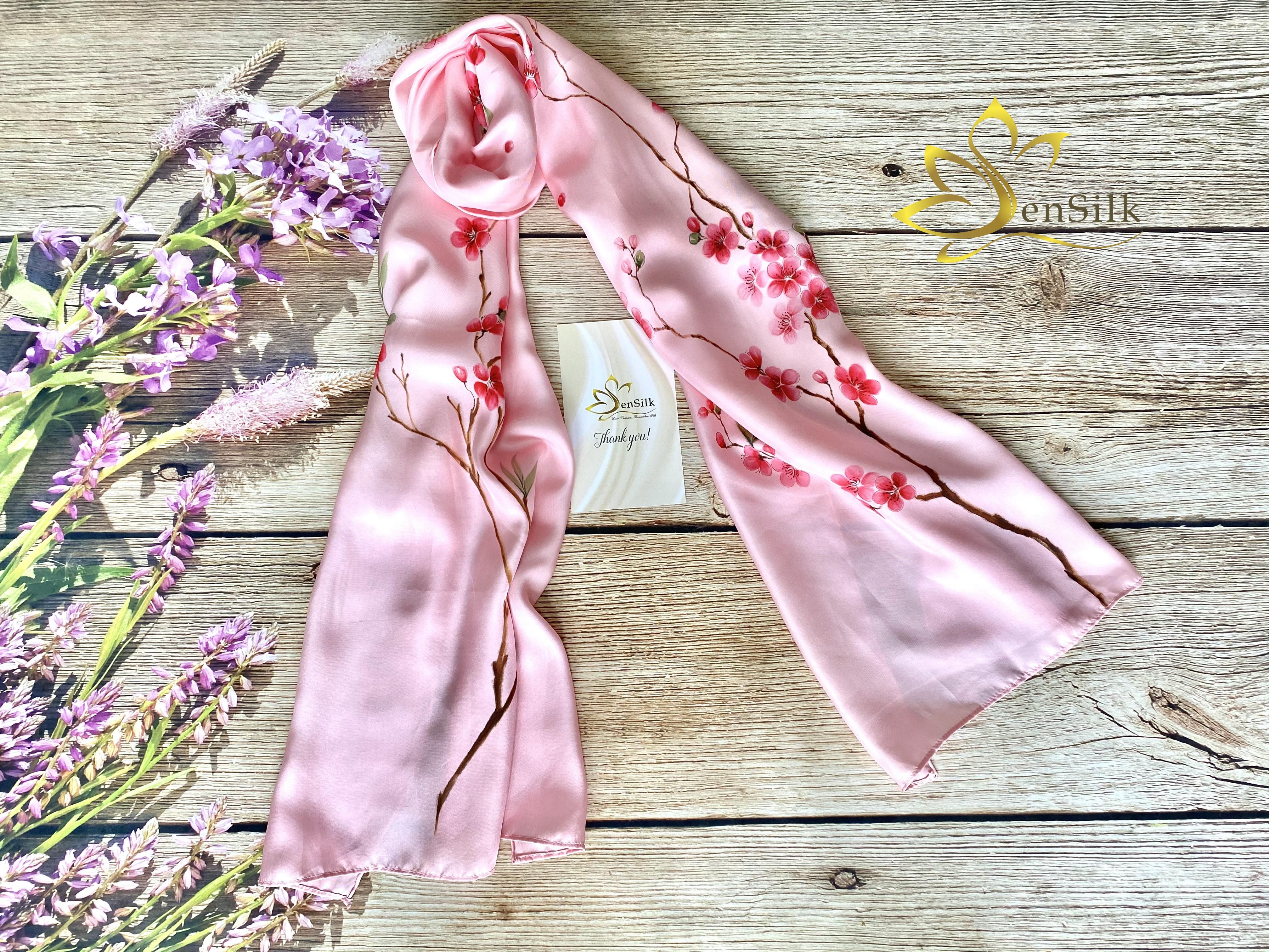 ✨Khăn Choàng Cổ Lụa Cao Cấp Vẽ Hoa Đào SenSilk 180x55cm, Tơ Lụa Bảo Lộc Cao Cấp, Khăn Quấn Cổ Thời Trang Cao Cấp