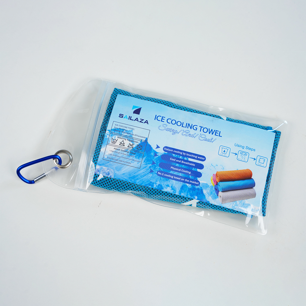 Thành phần vải mềm: 55% yếu tố bánh xe cotton. Cảm ứng tinh tế và thoải mái. Hướng dẫn sử dụng khăn làm mát Sailaza: B1: Nhúng khăn vào trong nước B2: Vắt khăn thật kỹ B3: Vẩy (rũ) khăn mạnh tầm 3-5 lần Khăn sẽ hạ nhiệt nhanh chóng để sử dụng làm mát cơ thể tức thì