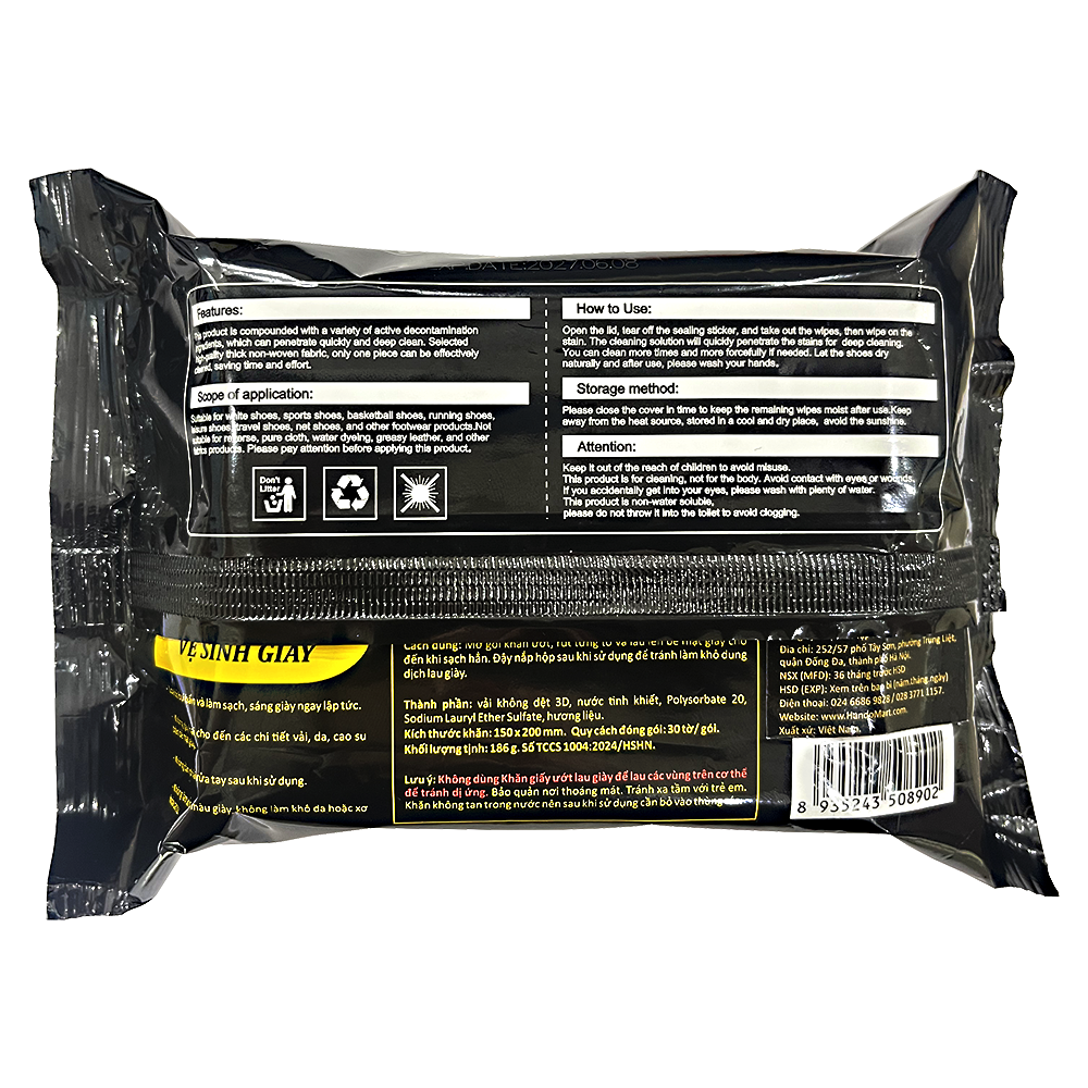 Mô tả sản phẩm Tác dụng, tính năng Khăn lau vệ sinh giày Hando