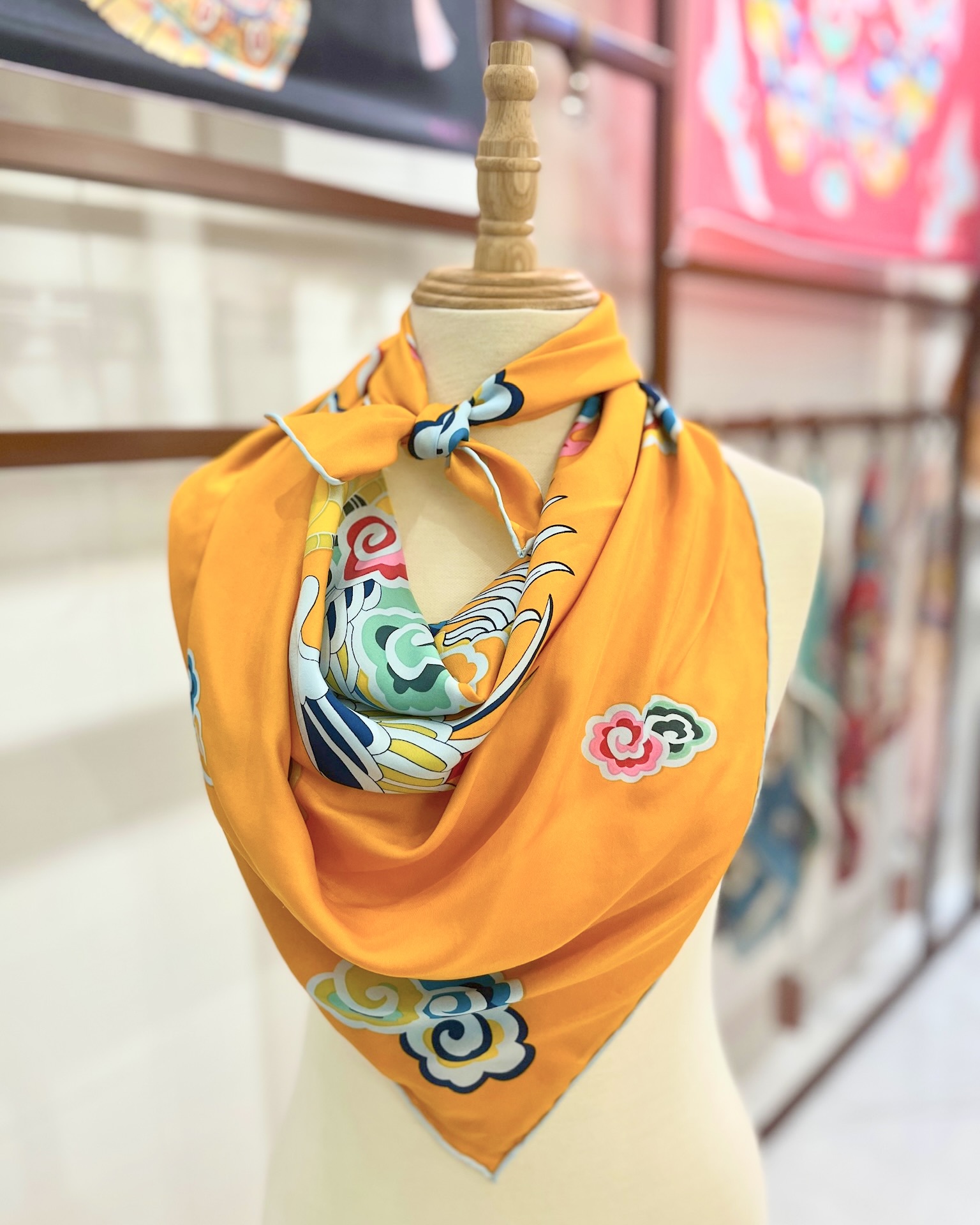 CÂU CHUYỆN Khăn “Vạn” được lấy cảm hứng từ hoạ tiết Đào và chữ Vạn trong hoa văn triều Nguyễn, hoạ tiết này mang ý nghĩa đặc biệt và thường xuất hiện trên các kiến